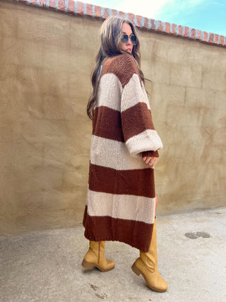 Sage The Label | Suki Stripe Duster Cardigan Brown Camel