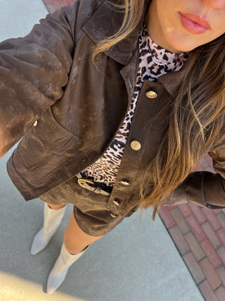 Sadie & Sage | New Chapter Leather Jacket Dark Brown