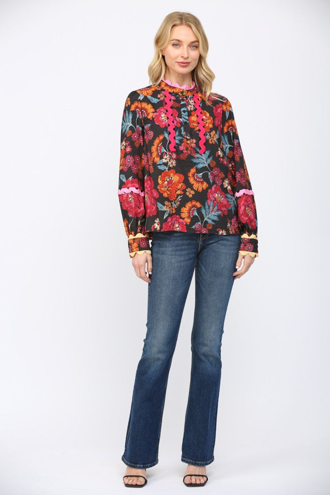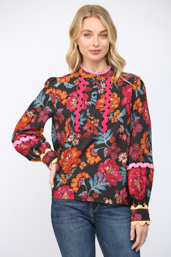 Fate | Georgia Ric-Rac Trimmed Blouse Black Muti