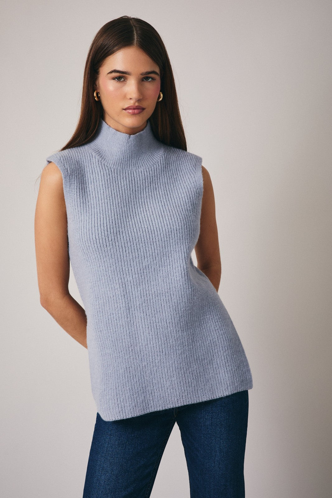 Sunday Edition | Mia High Neck Sleeveless Top Dusty Blue