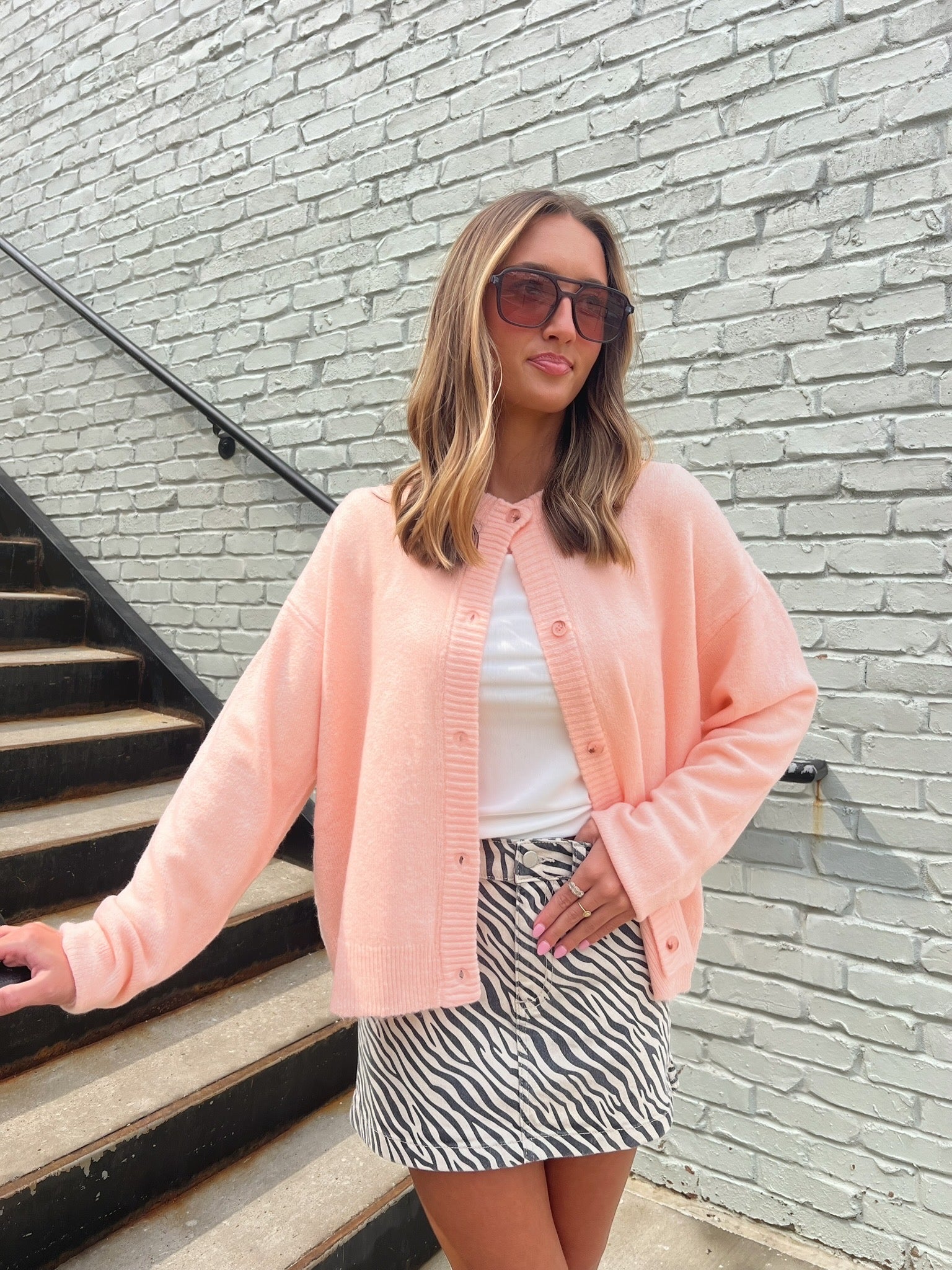 A soft, lightweight cardigan you will reach for year-round. Designed with a classic button-front silhouette, relaxed fit, and easy drape that layers effortlessly over tanks, tees, or dresses. The knit feels comfortable without being bulky, making it ideal for transitional weather and indoor layering. We loved this one so much, we ordered it in four colorways: blue, lilac, light pink, and spearmint, each shade feeling fresh and wearable.