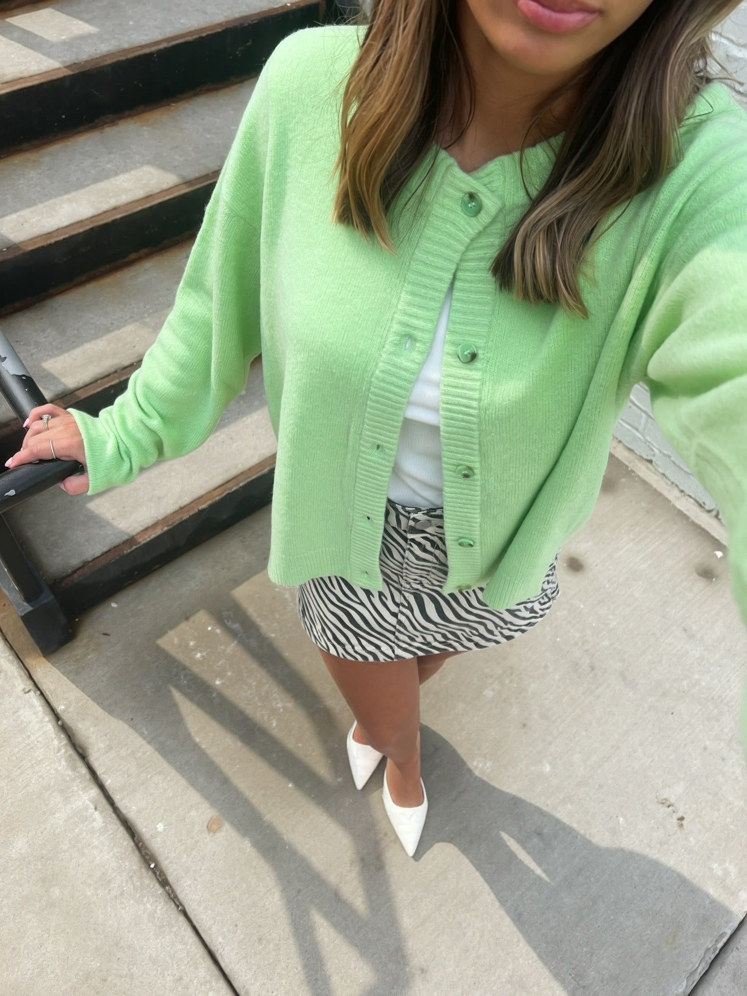 A soft, lightweight cardigan you will reach for year-round. Designed with a classic button-front silhouette, relaxed fit, and easy drape that layers effortlessly over tanks, tees, or dresses. The knit feels comfortable without being bulky, making it ideal for transitional weather and indoor layering. We loved this one so much, we ordered it in four colorways: blue, lilac, light pink, and spearmint, each shade feeling fresh and wearable.