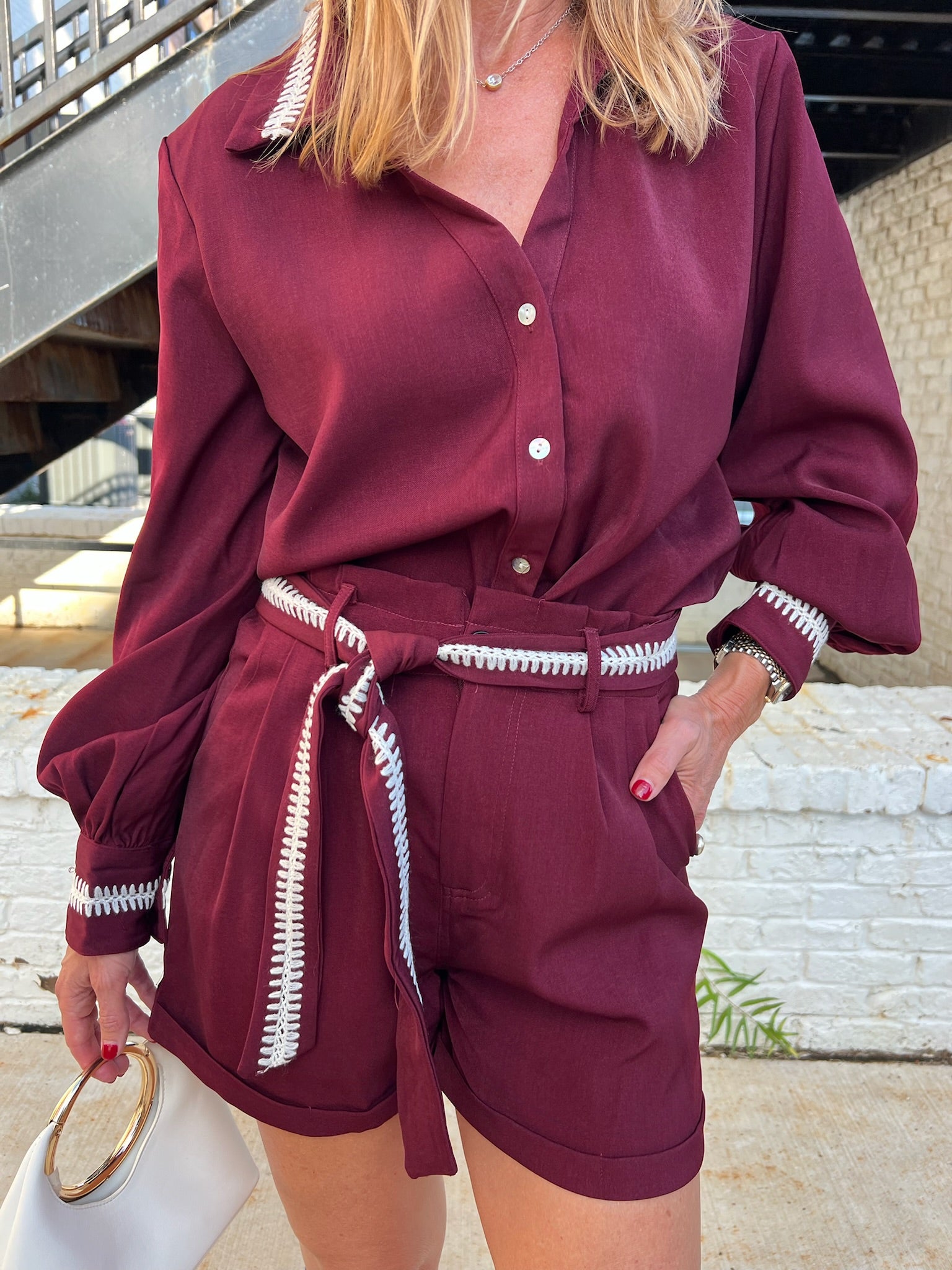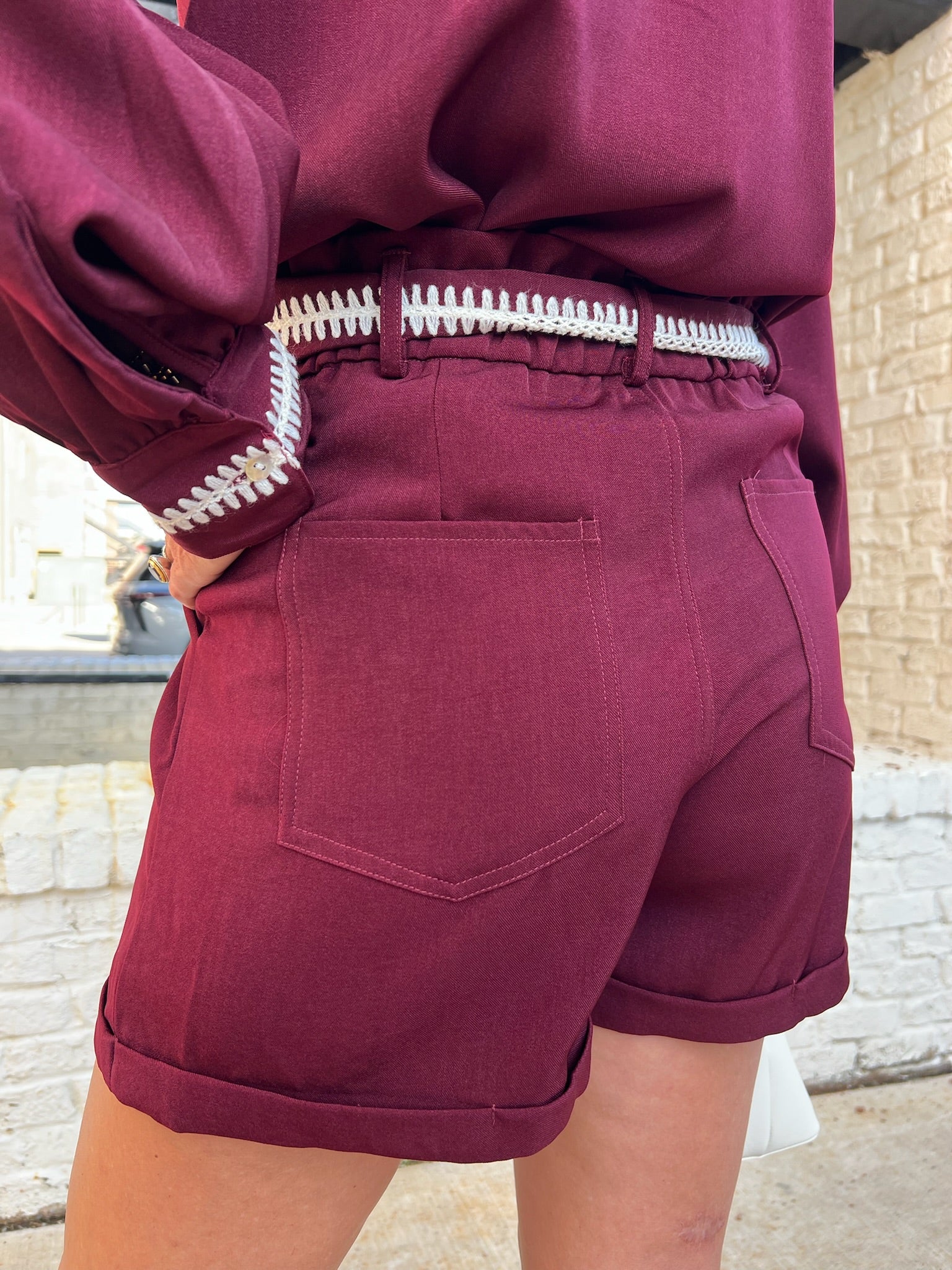 GLAM | Jennifer Stitch Belted Shorts Burgundy