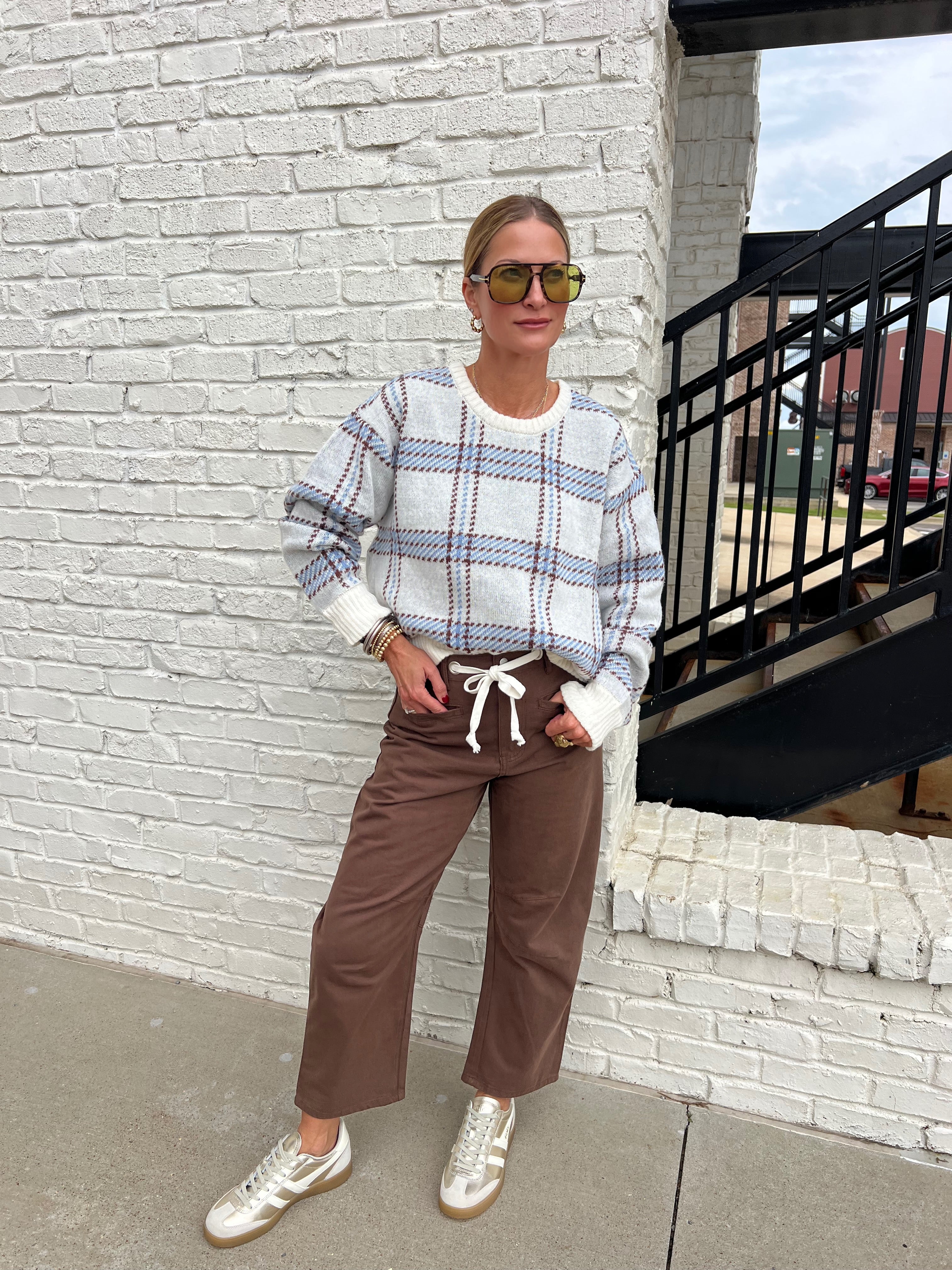 A little bit utility, a little bit street. These barrel-leg pants in a warm brown hue feature oversized front pockets, a dramatic cinch waist with chunky grommets, and an exaggerated rope tie for a fresh, modern twist. The structured silhouette tapers at the ankle, giving them that bold barrel shape we love. Easy to dress up with a sleek top or down with sneakers and a tee.