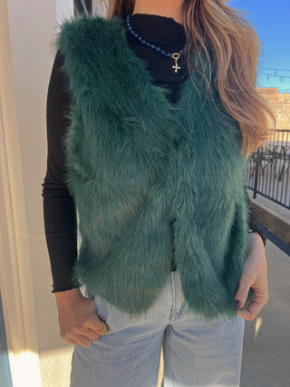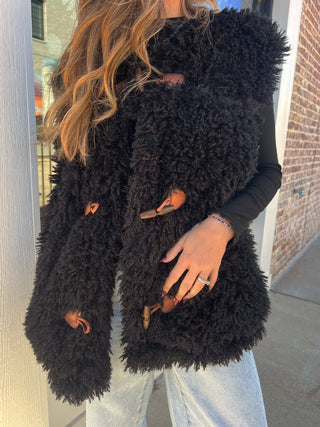 Jade Toggle Closure Fuzzy Vest Black [Door Buster]