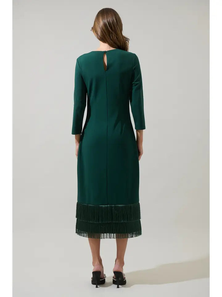 Sugarlips | Alannah Fringe Midi Dress Emerald