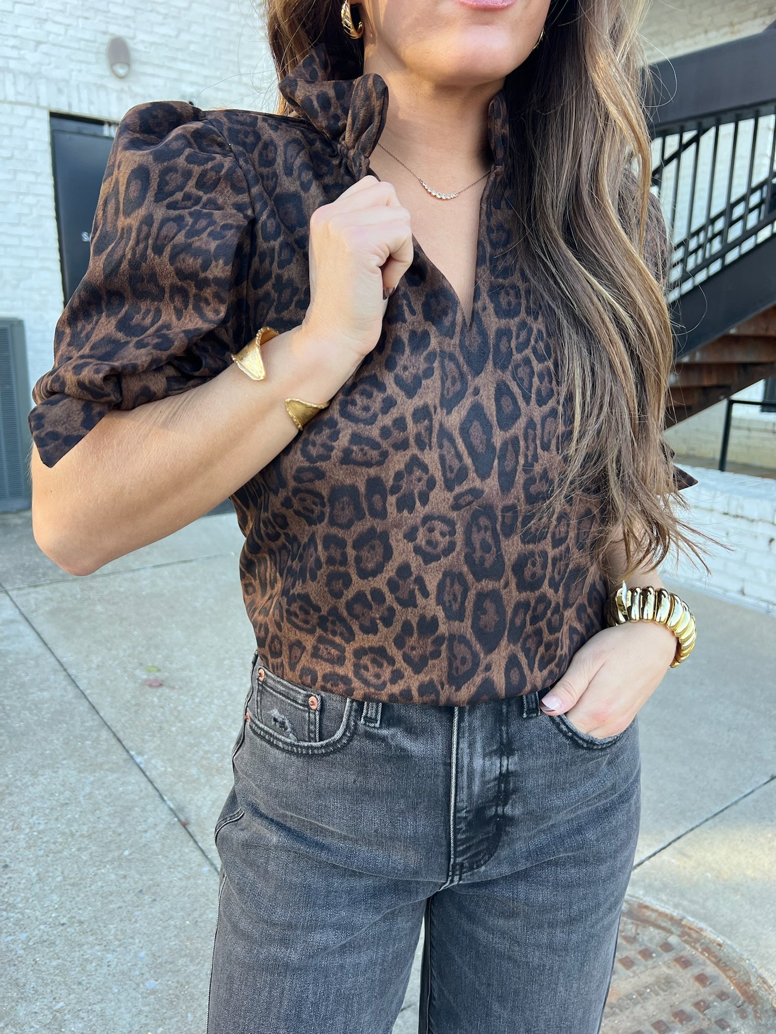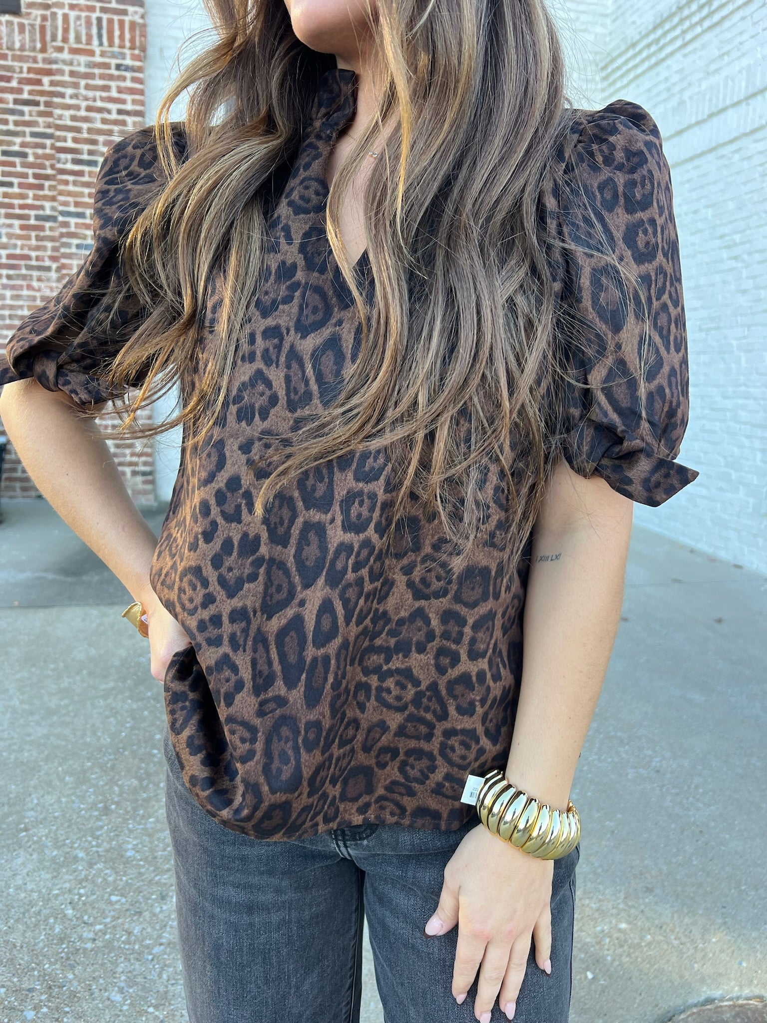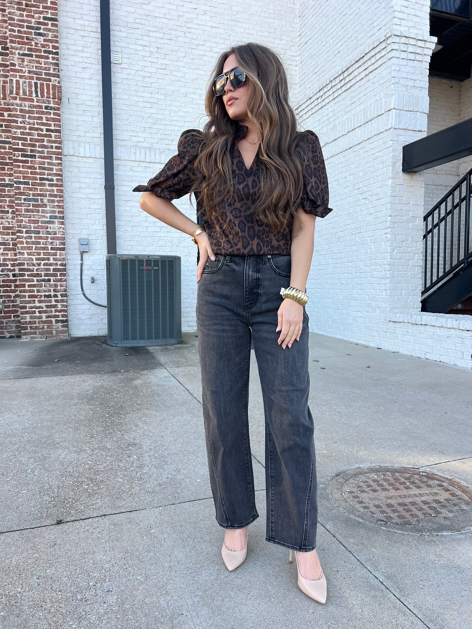 Some prints just know how to steal the moment, and this leopard blouse does it with ease. The rich chocolate and black tones make it feel elevated, while the flutter sleeves with tie details add the sweetest feminine touch 🐆 The lightweight fabric drapes beautifully, giving you that effortless look whether you tuck it into denim or dress it up for a night out. We would wear this to dinner plans, concerts, or a fun weekend outing.