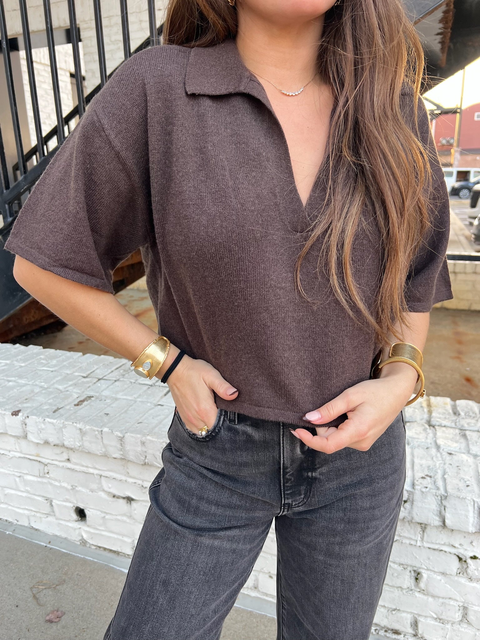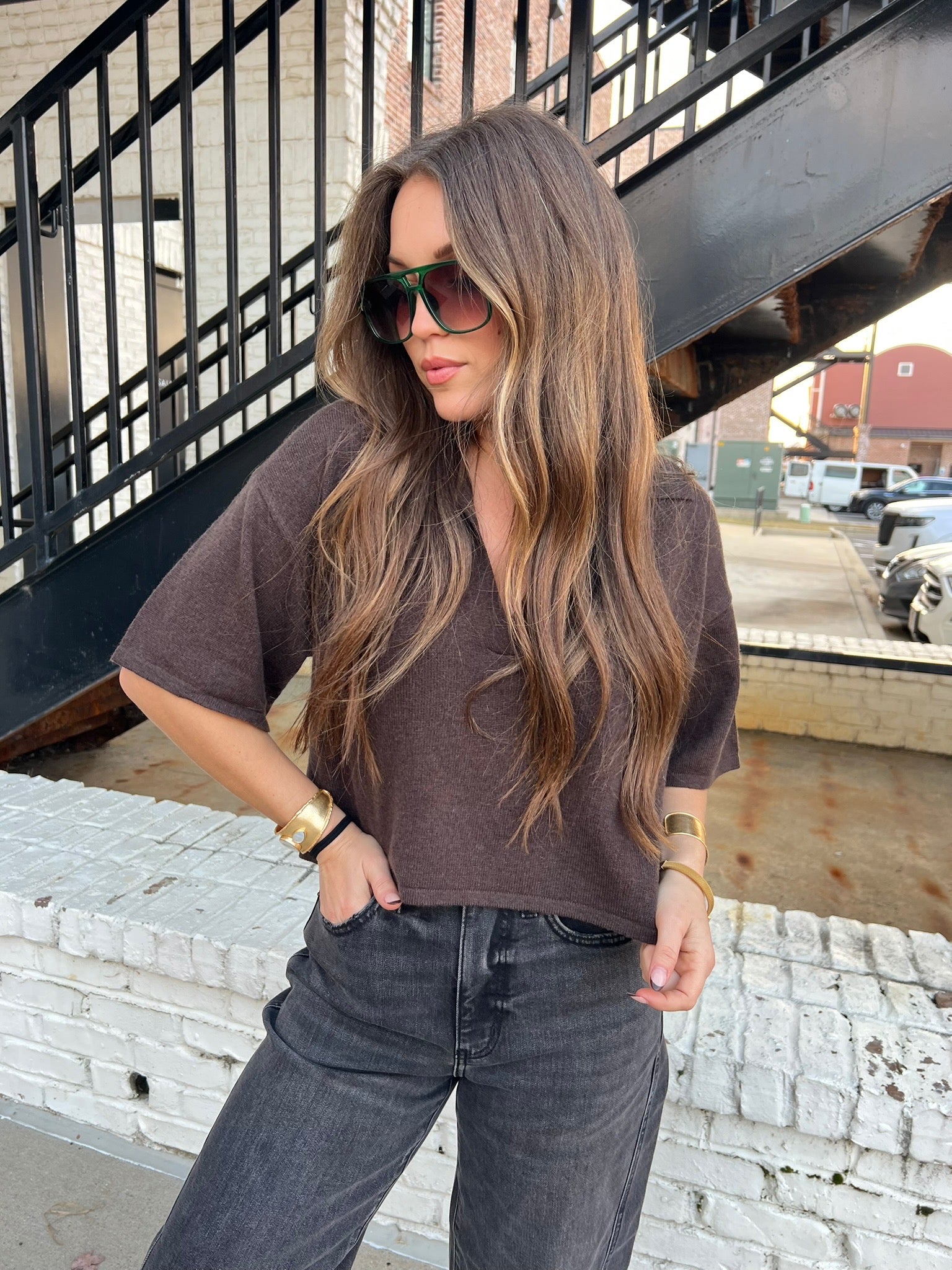 This chocolate knit top is the definition of easy, elevated style. The soft ribbed texture gives it a luxe feel, and the relaxed collar with a subtle V-neckline keeps the look clean and modern. The cropped length pairs perfectly with high-rise denim for an effortless, everyday outfit. It’s simple, flattering, and so easy to love. 🤎✨