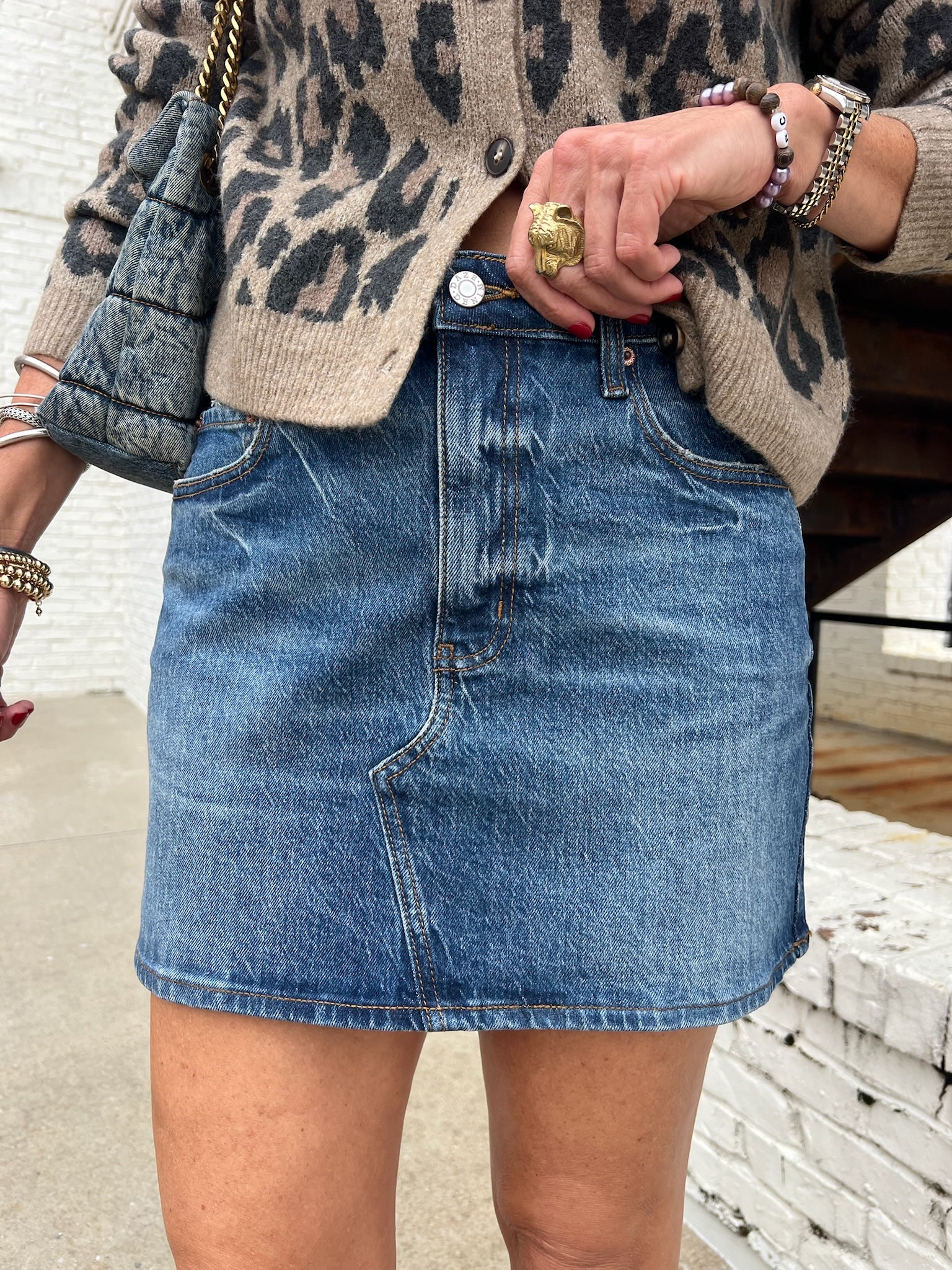 The Malibu Mini in Authentic is an easy little denim mini in the perfect dark indigo wash. Whiskering and fading throughout make this skirt look like an authentic vintage score.