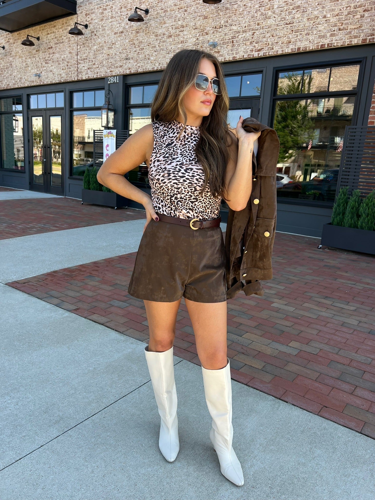Sadie & Sage | Reverie Leopard Mockneck Tank Brown Multi