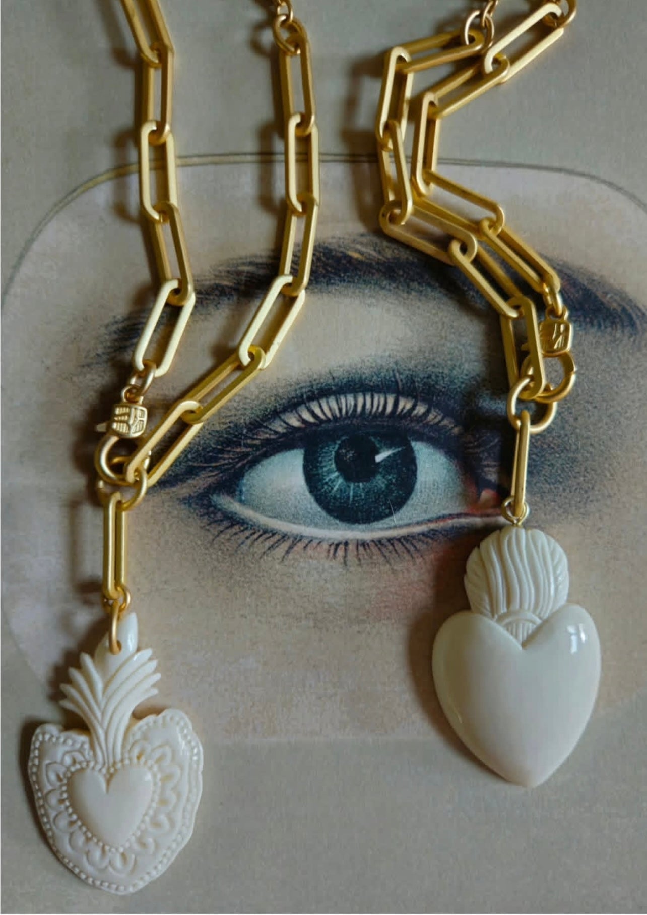 Amulet Brave Design | Carved Bone Lace Heart Necklace