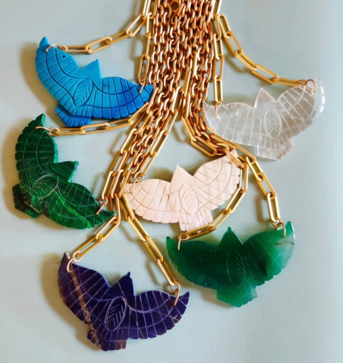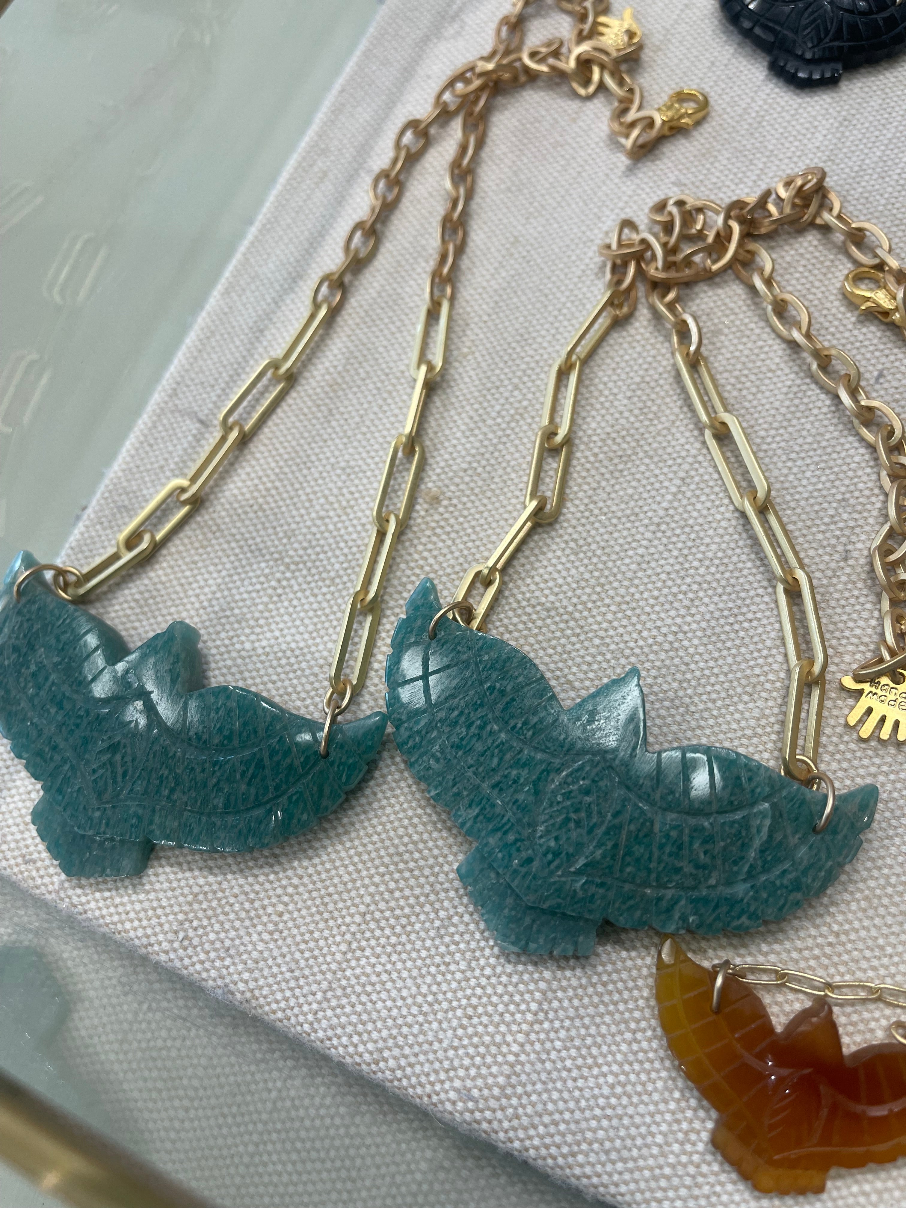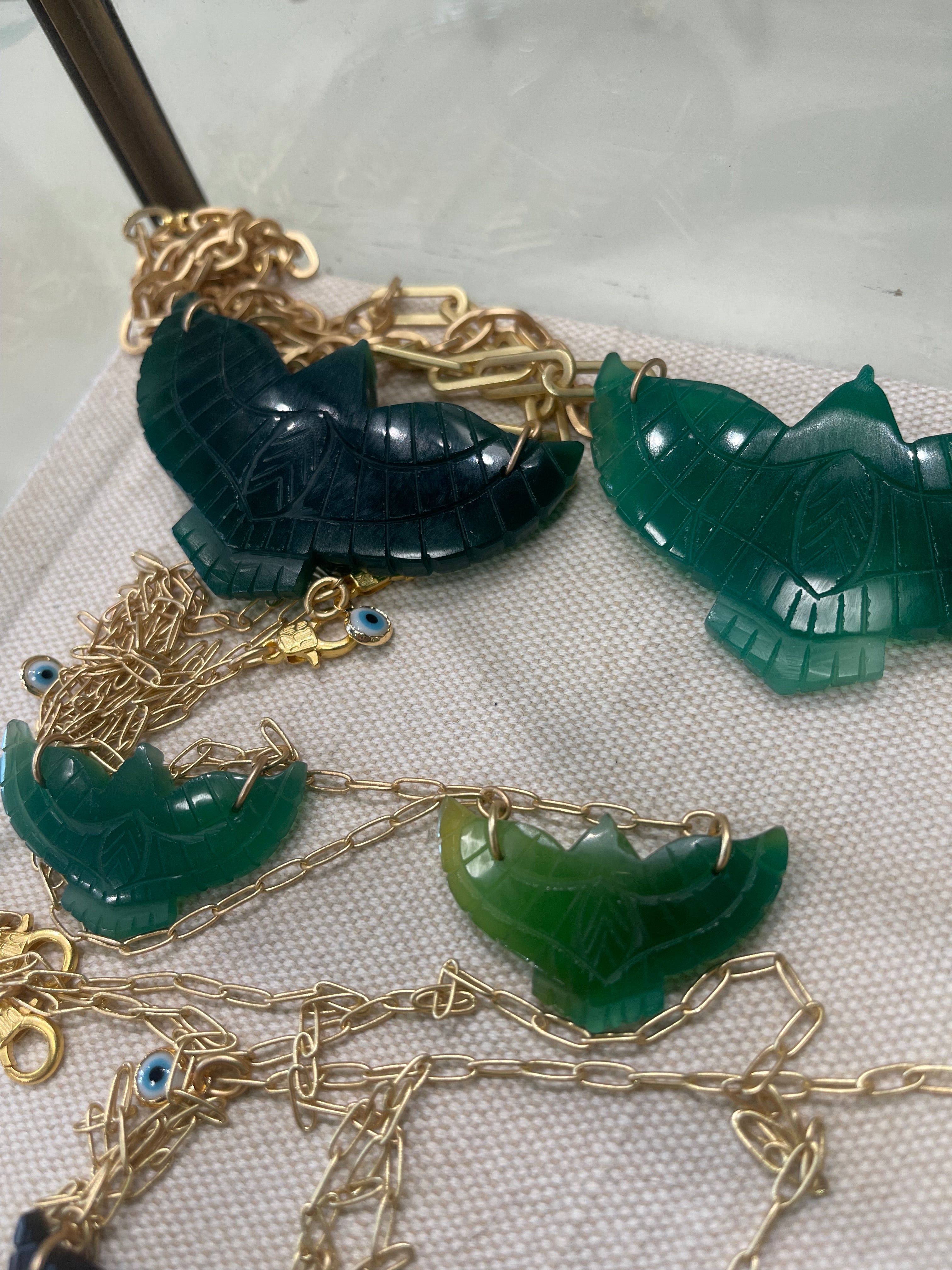 hand-carved large stone thunderbird + matte gold paperclip chain