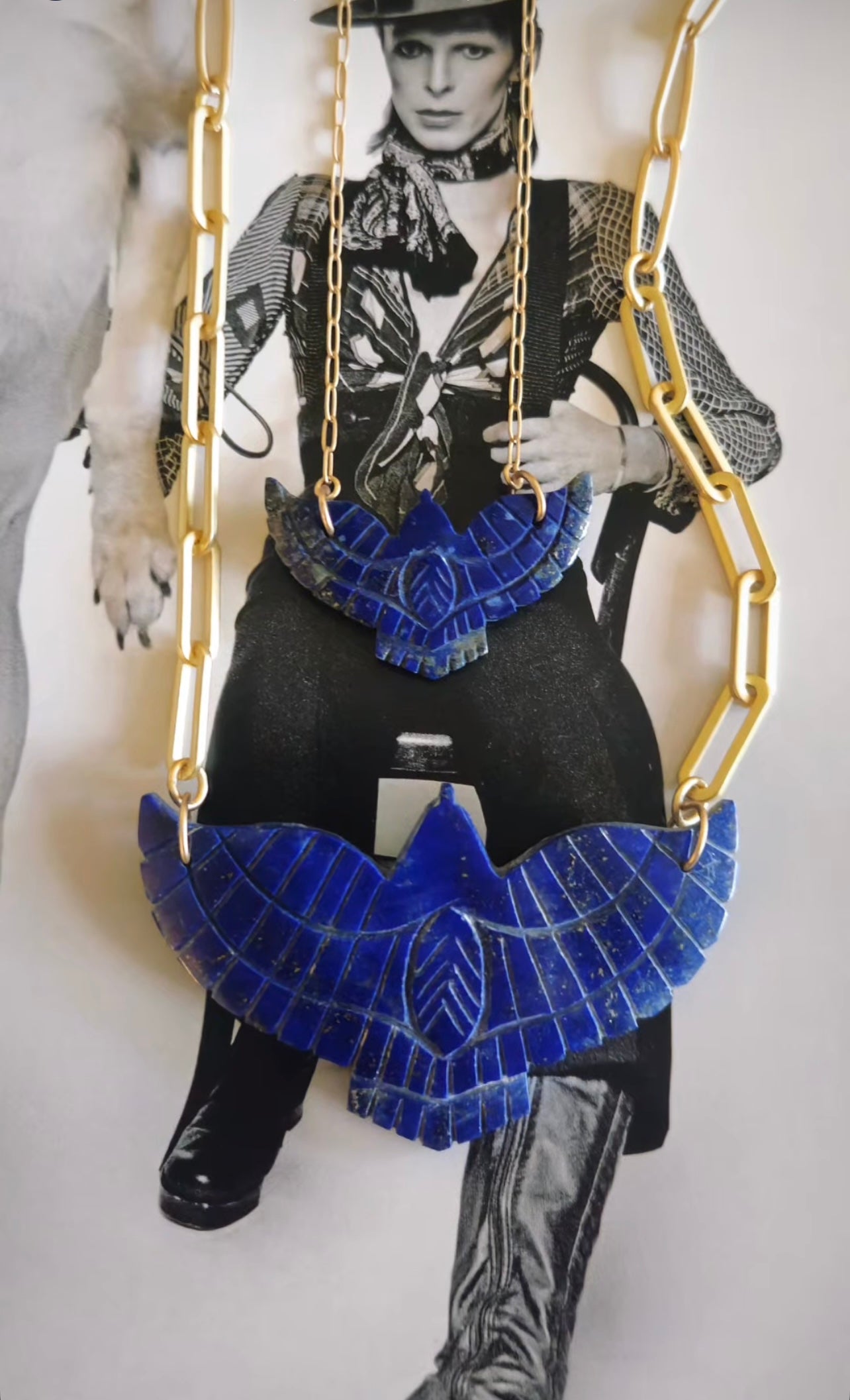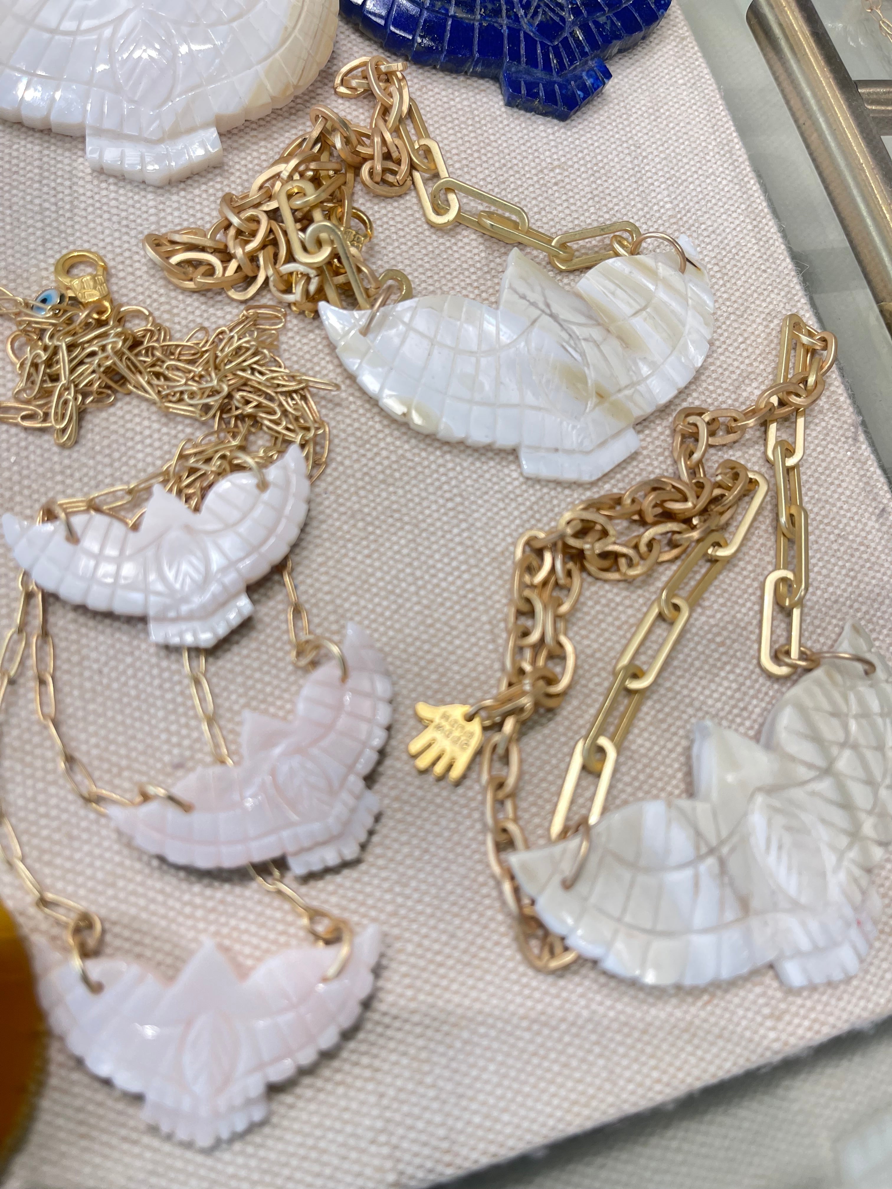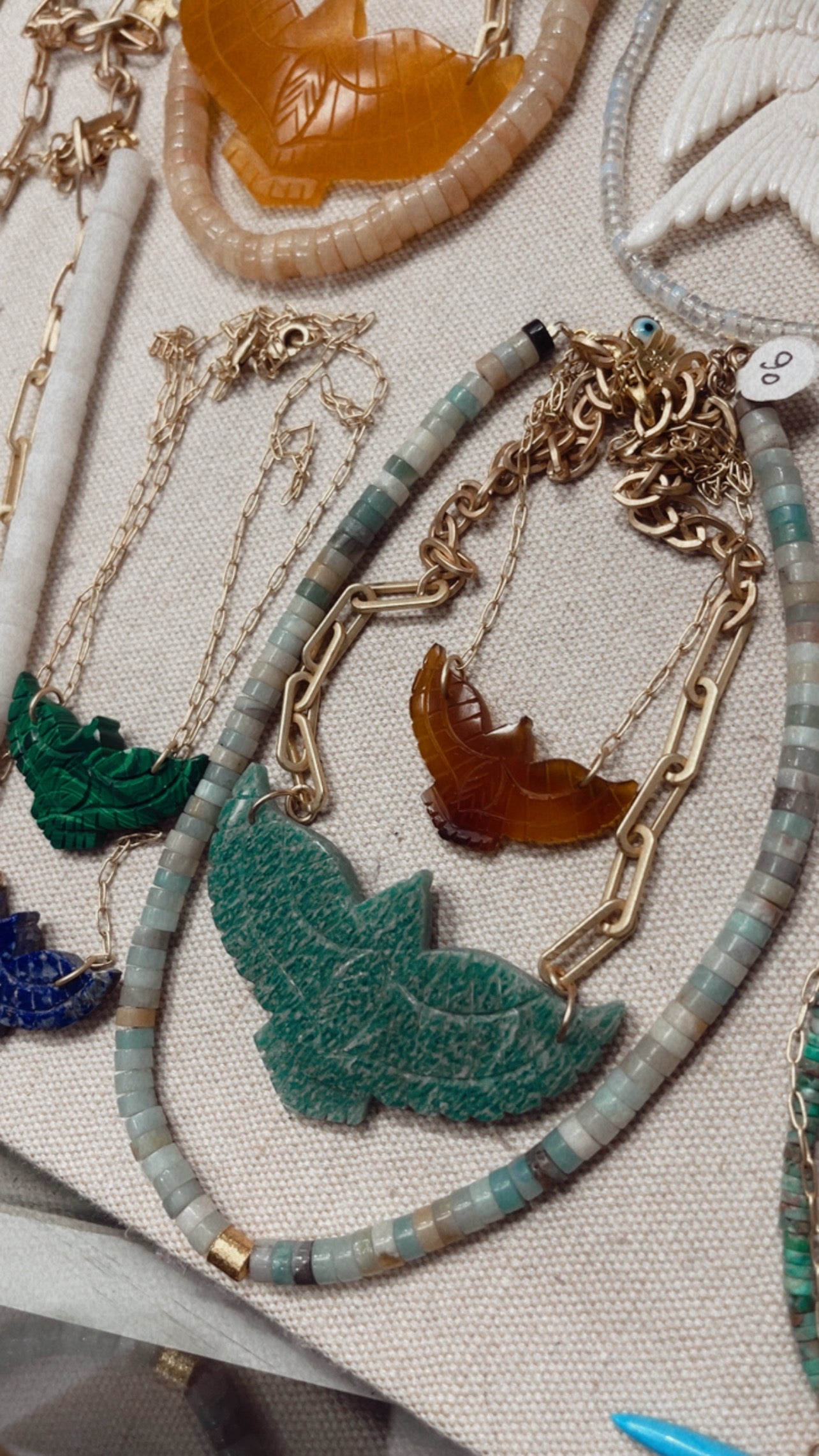 hand-carved large stone thunderbird + matte gold paperclip chain