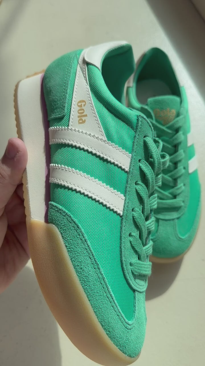 As part of Gola’s new collection, the women’s Pacer silhouette has all the characteristics of an instant classic. With its versatile colourways and play on texture, the Pacer is the perfect go-to for a sneaker that’s playful yet timeless.