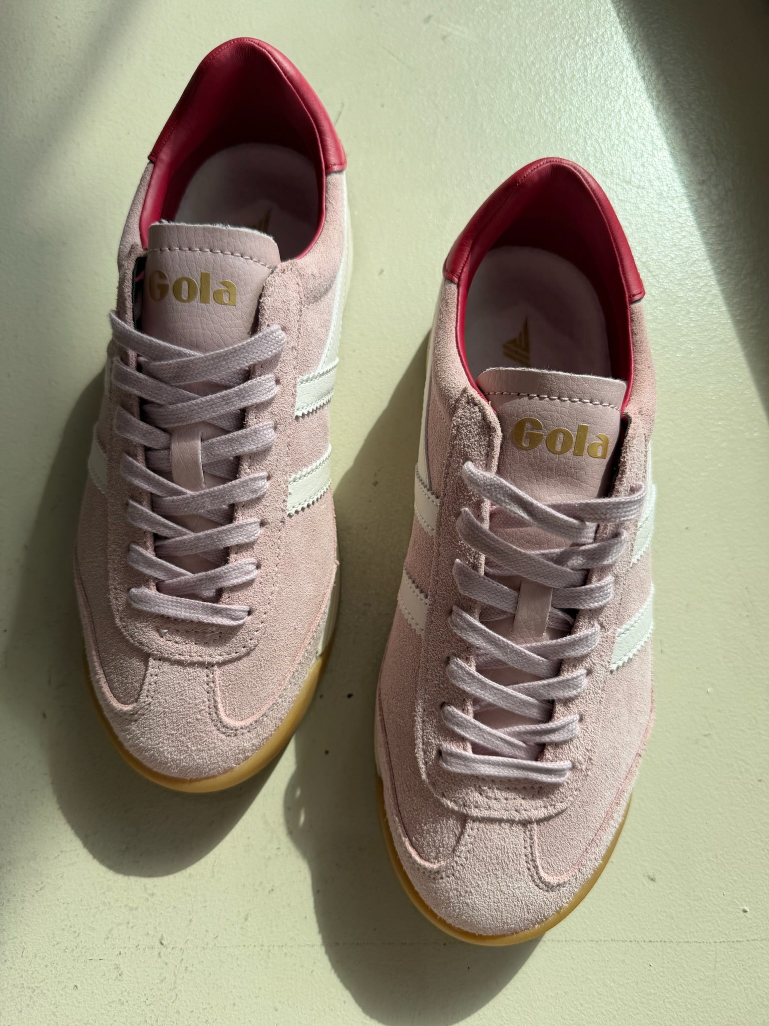 Expanding the Tornado family, the women’s Tornado ‘88 sneaker has the same classic feel as before, now with a contrasting sole and fresh new colourways for the season. Chalk pink suede is complimented with a signature off white Gola wingflash trim and lollipop tab, finished with a terry toweling insole for classic style and comfort.