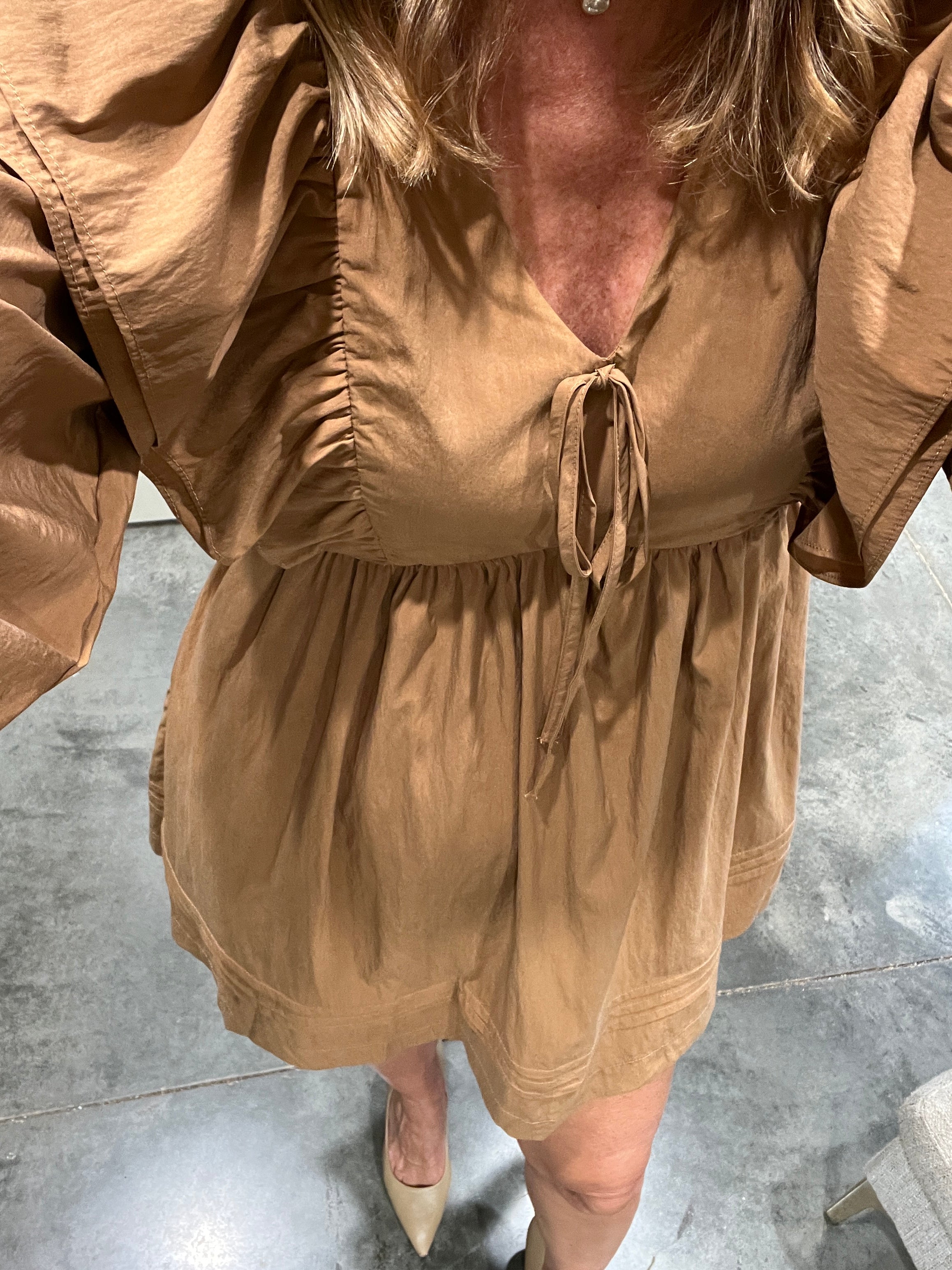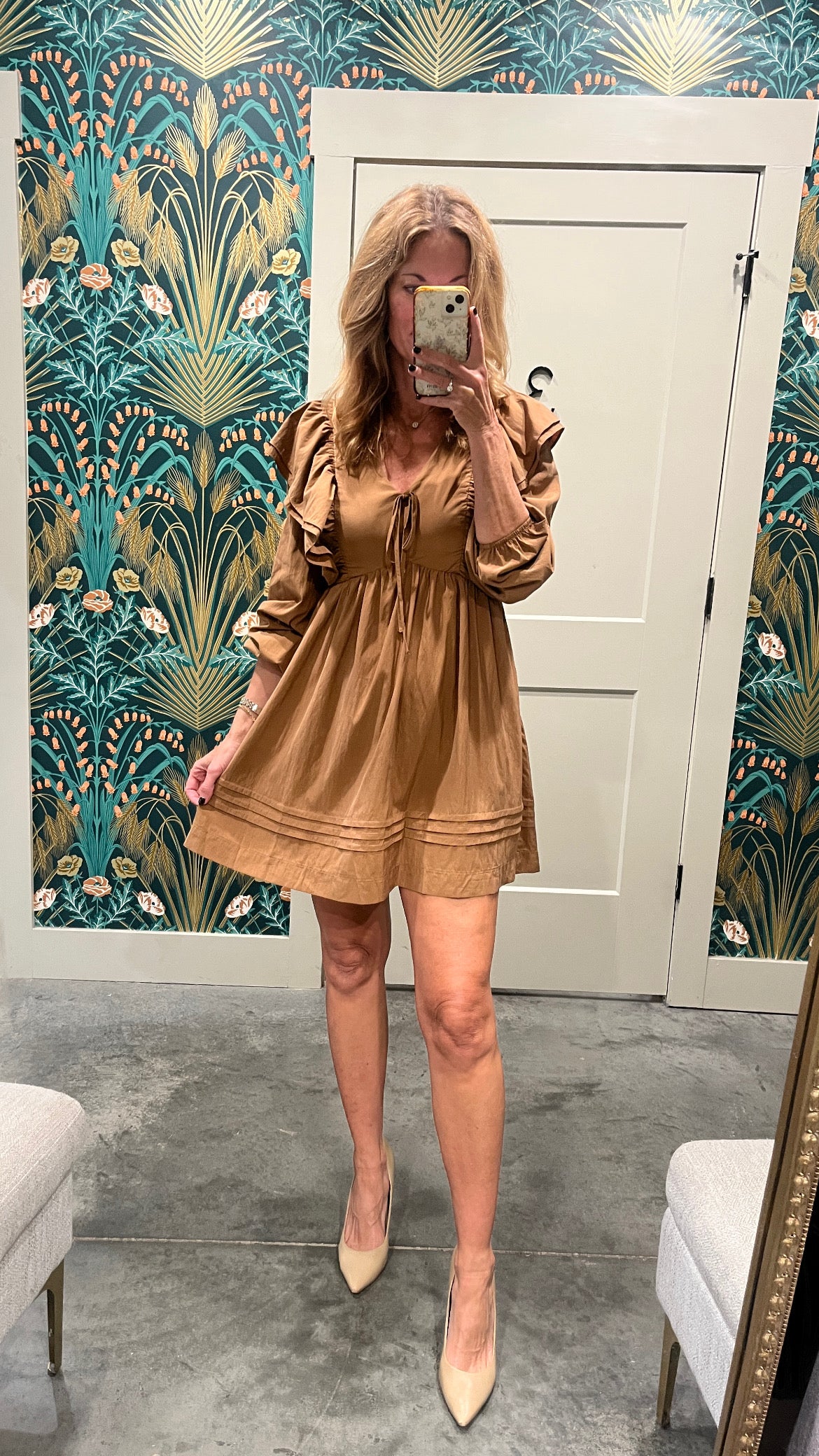 Softly structured with just the right amount of detail 🤎 The Heyson Ruffle Midi Dress features flutter sleeves, a deep V-neckline with a tie front, and delicate ruffle trim that adds feminine charm. The flowy fit and cinched waist make it flattering and easy to wear for any occasion.