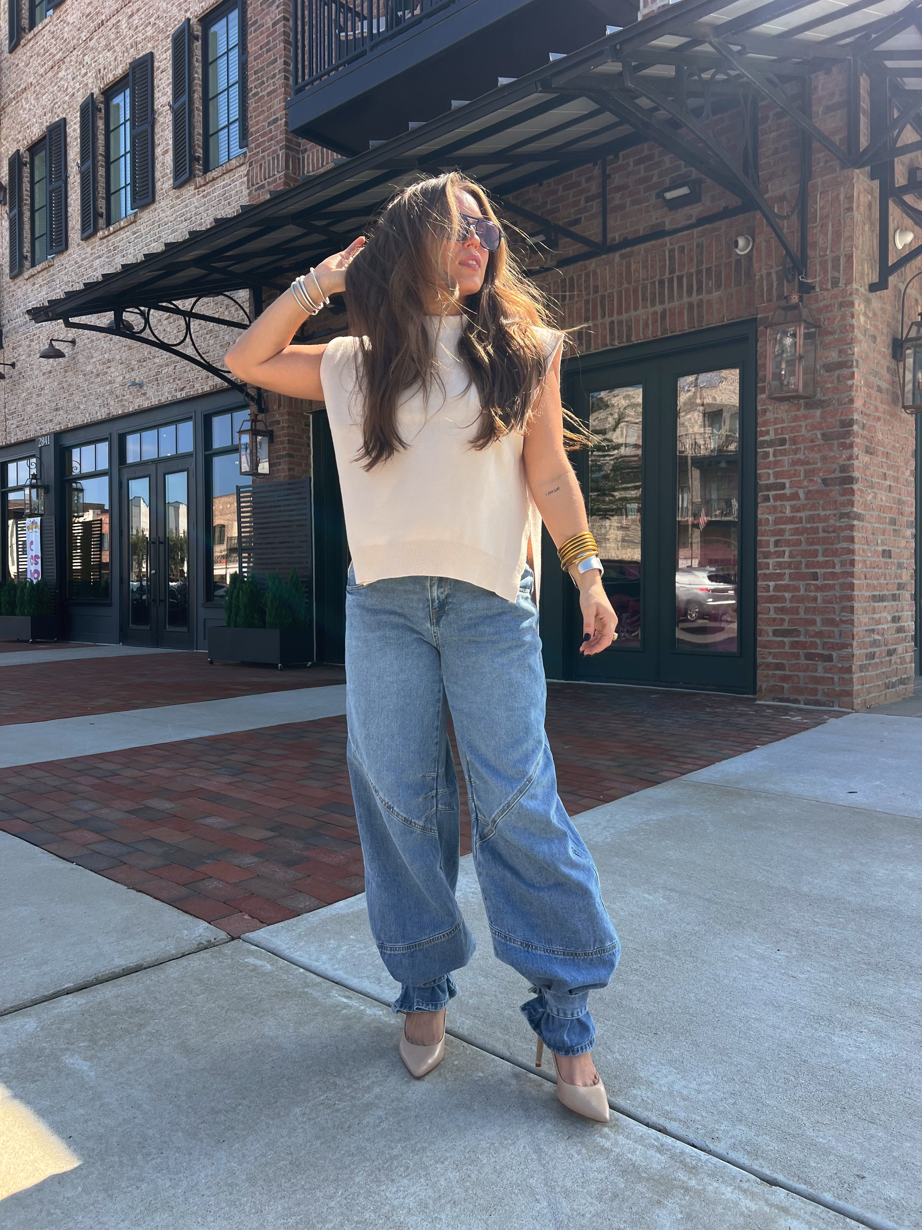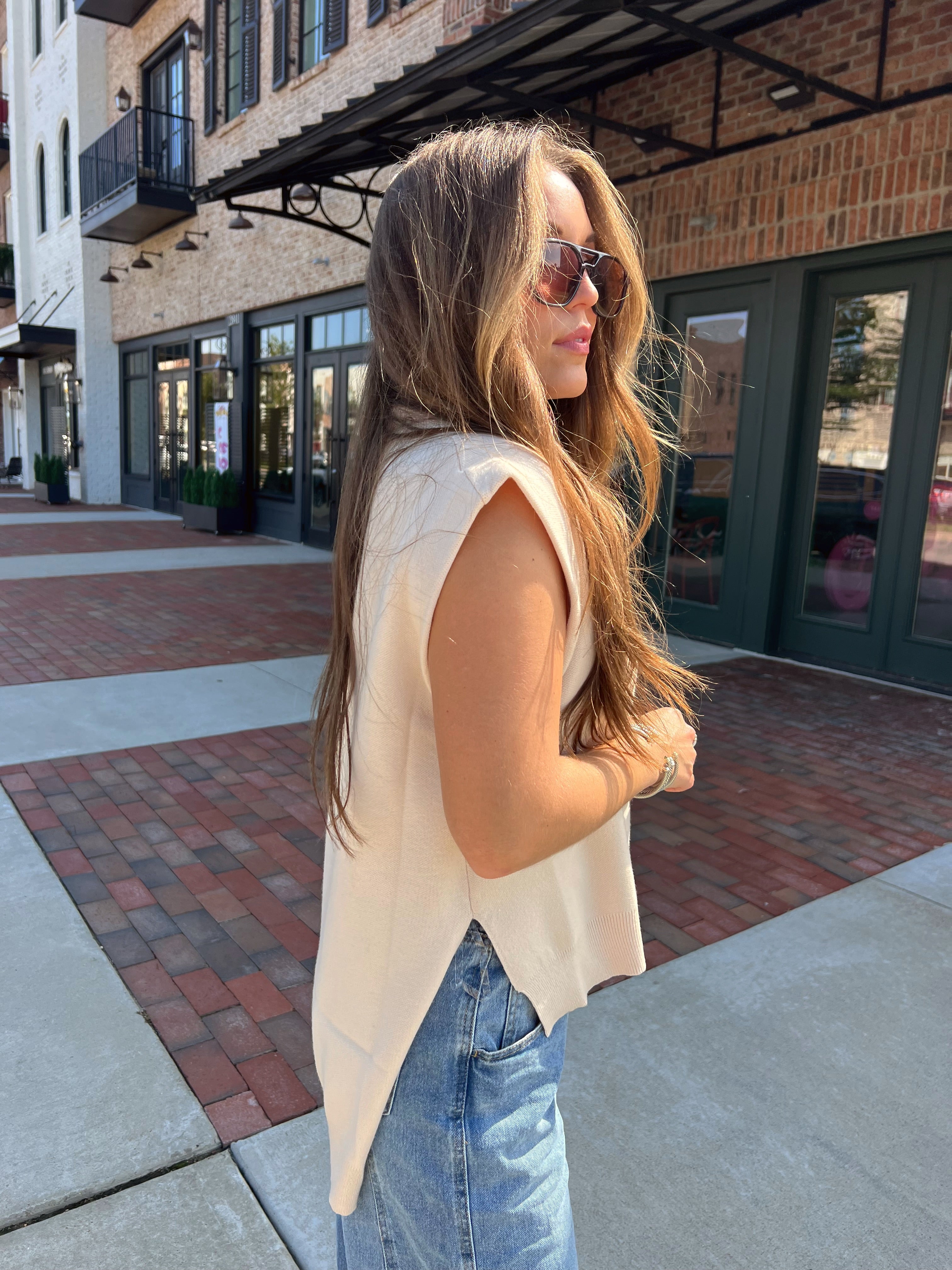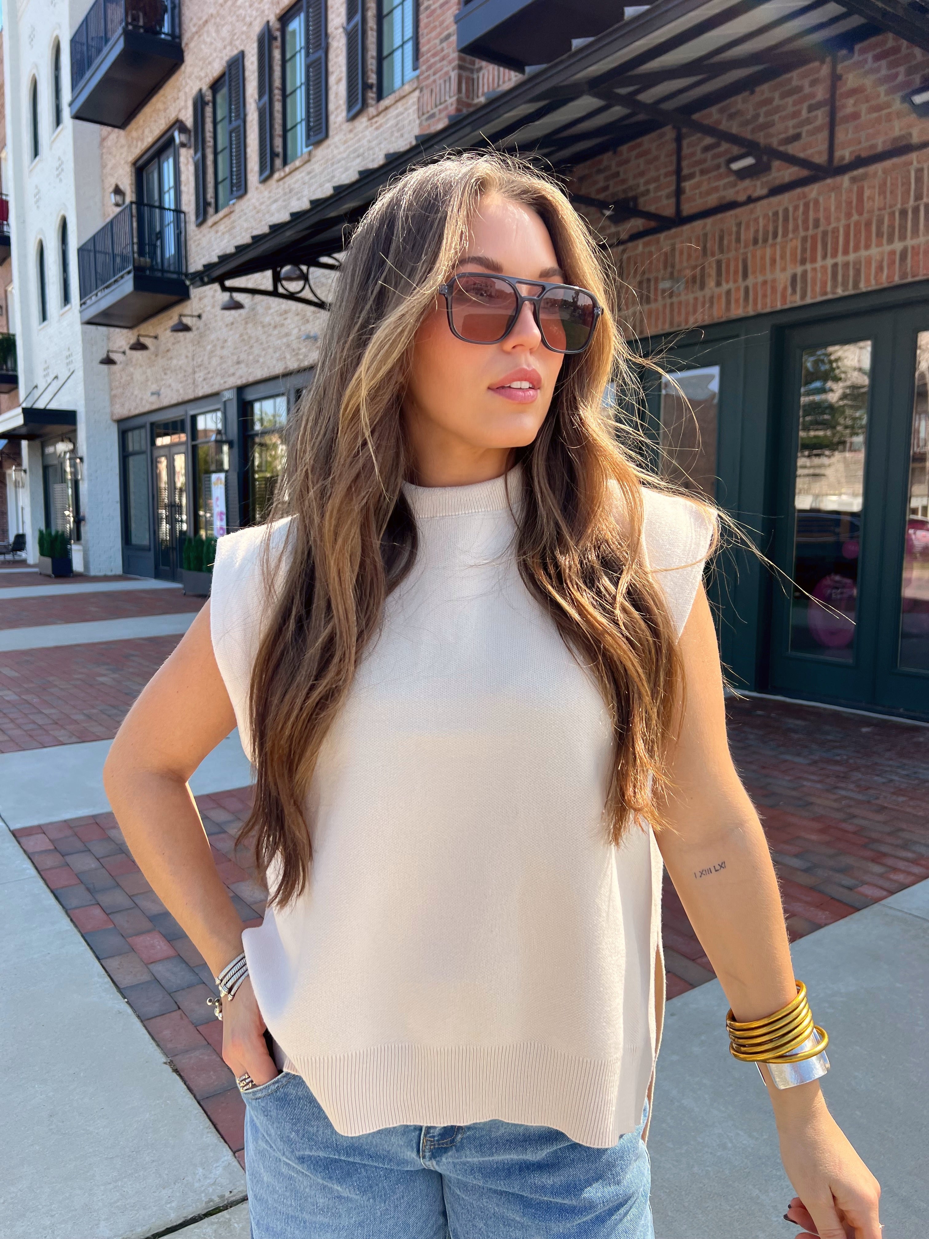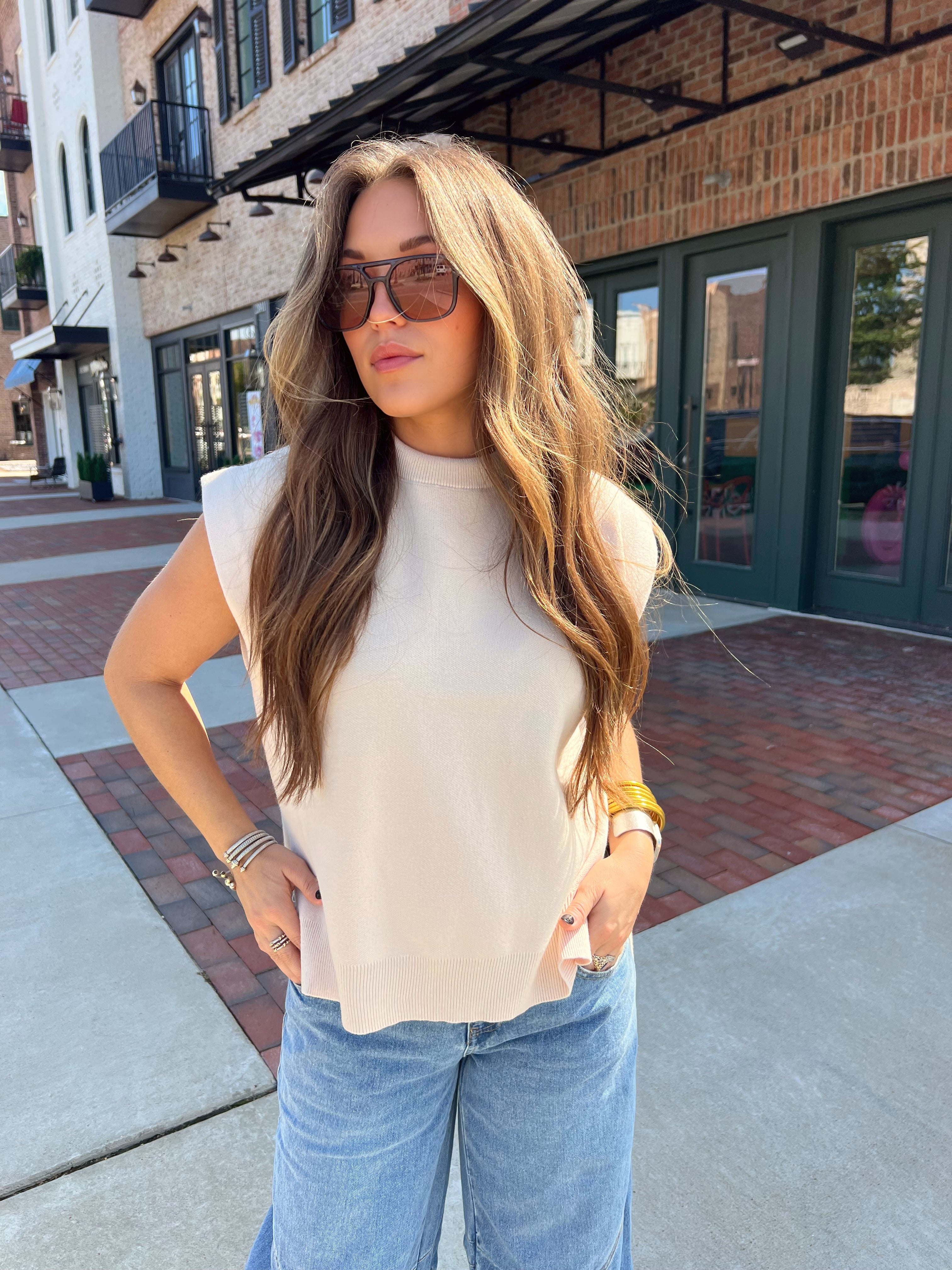 Soft, simple, and perfectly elevated — this Entro cream knit top is your new go-to for effortless style. The lightweight sweater material drapes beautifully with a relaxed, boxy fit and side slits for easy movement. Its clean lines and polished mock neckline make it ideal for layering or wearing solo all season long.