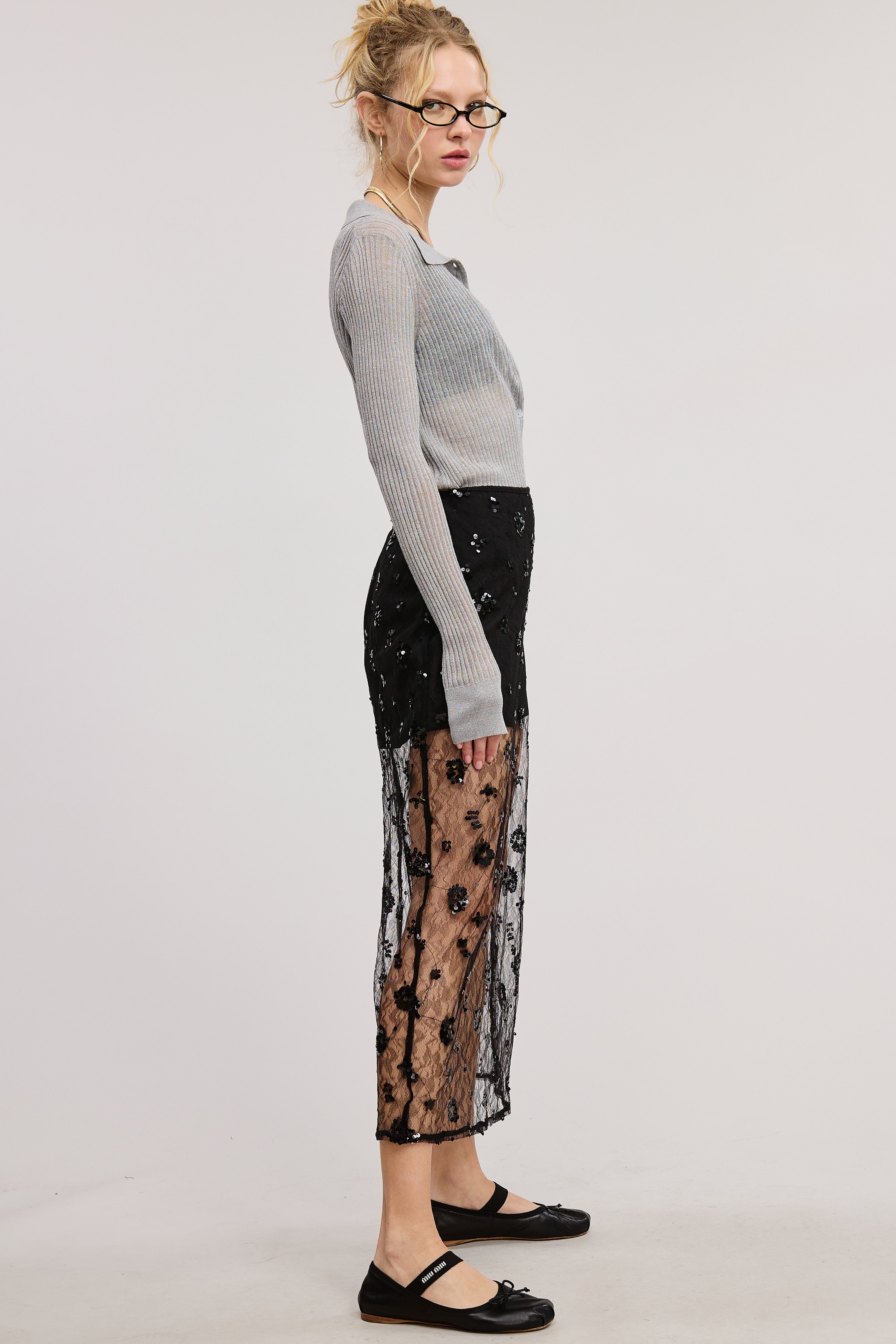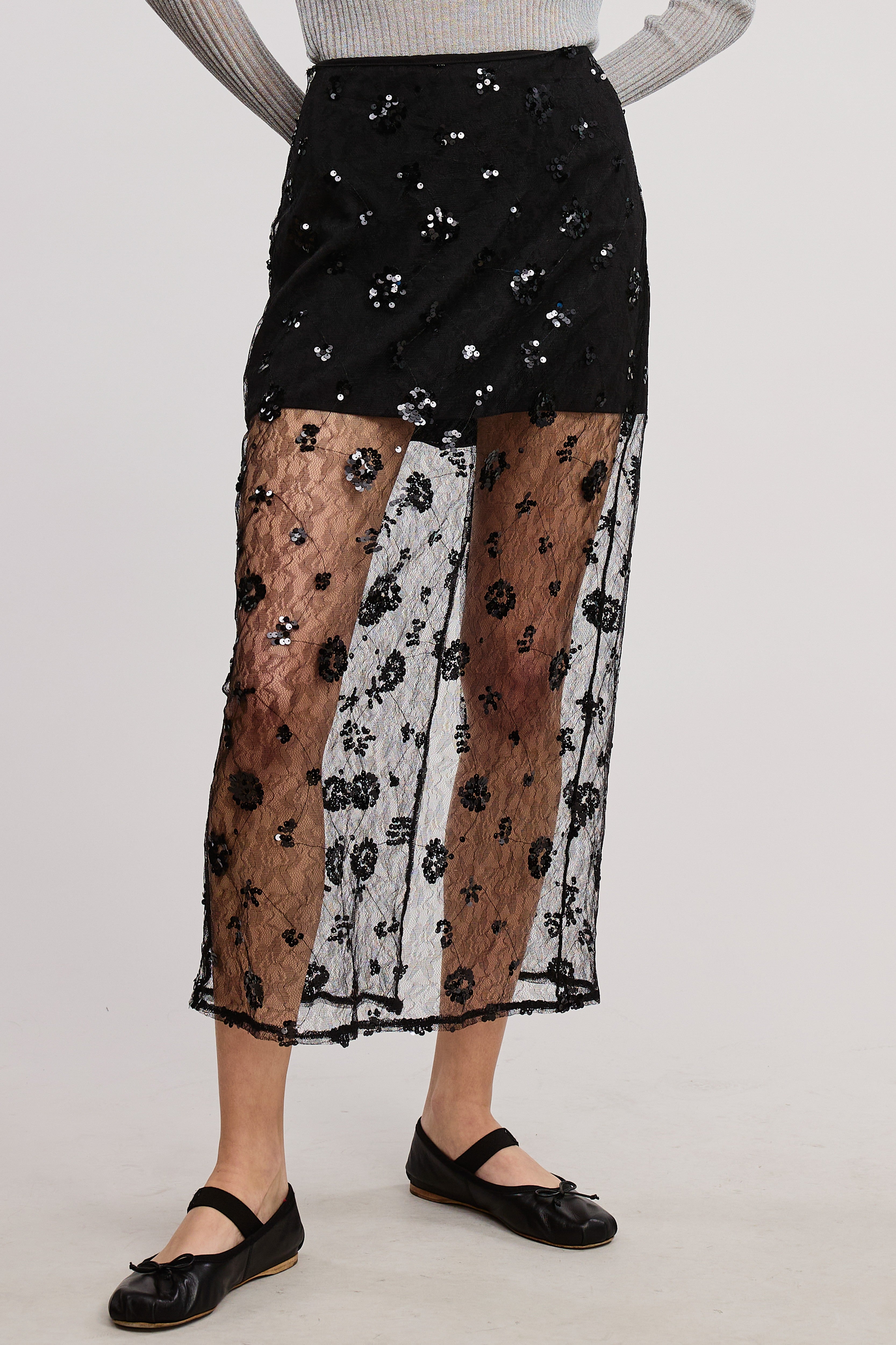 Mimosa | Caliee Floral Sequin Midi Skirt Black