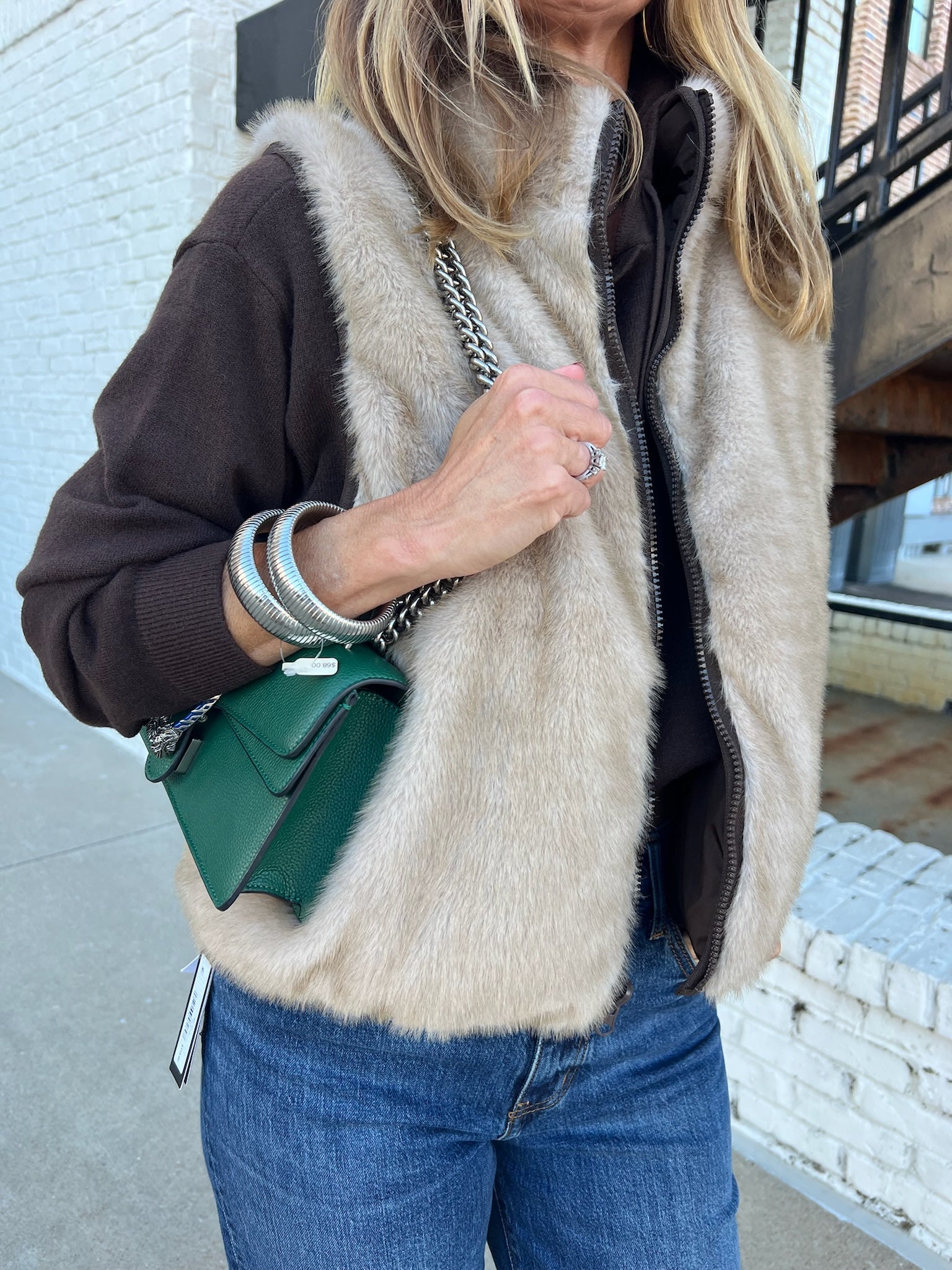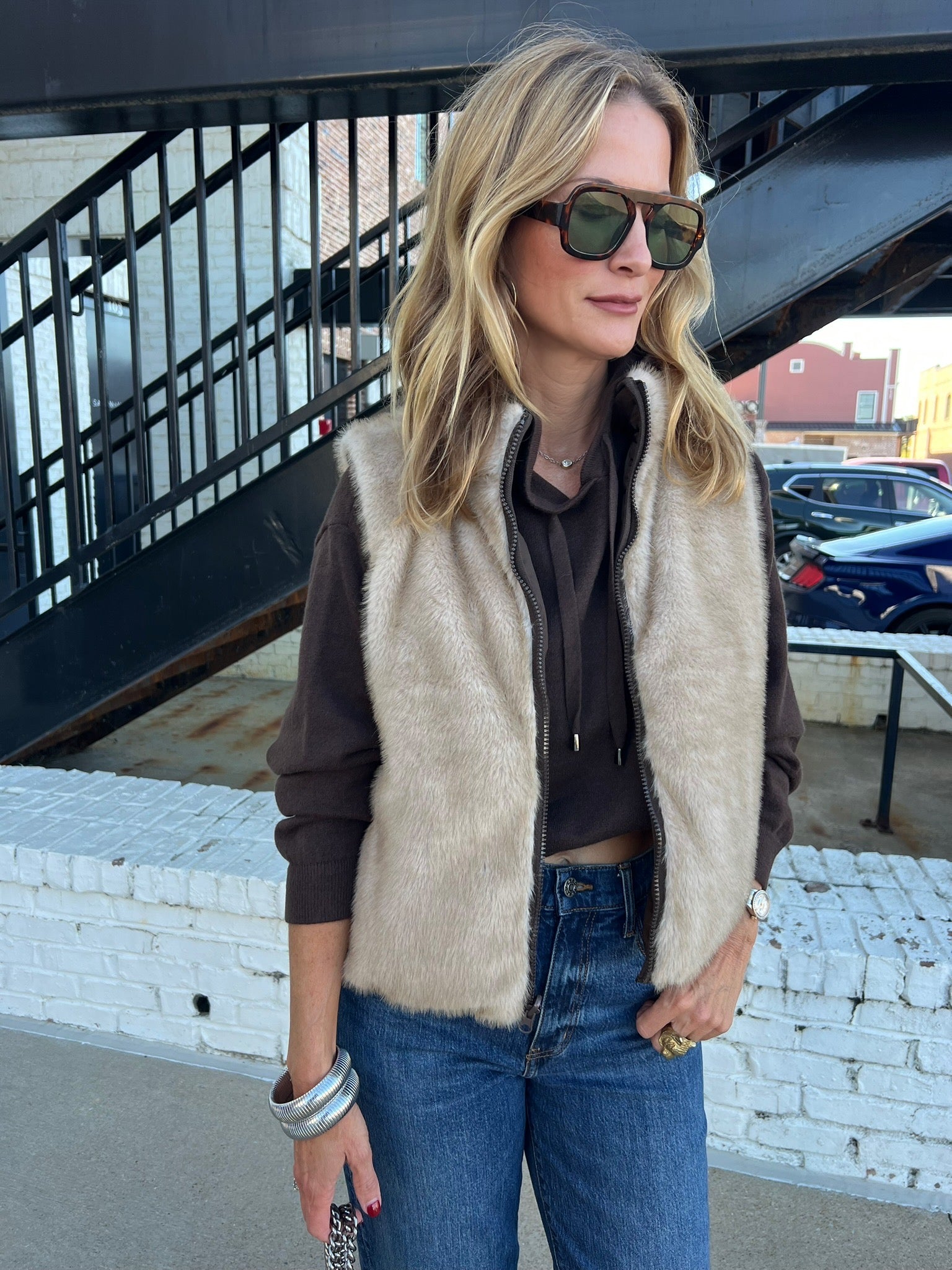 Reversible Puffer + Faux Fur Vest – Mocha/Taupe