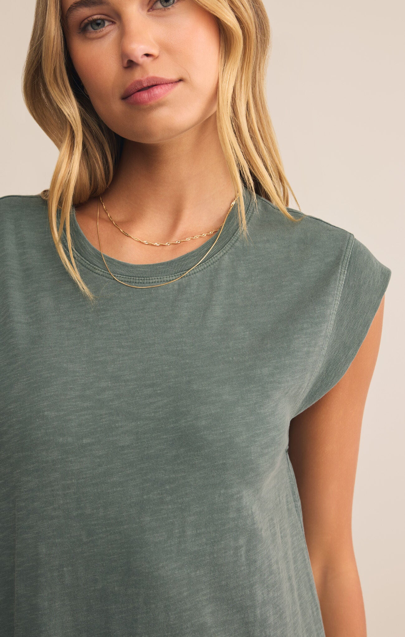 Elevate your wardrobe with our Z Supply Women's Calabasas Midi Dress! This lightweight piece features a crew neck, short sleeves, and a trendy curved hemline that effortlessly flatters any figure. The heavy soft wash and relaxed fit adds a touch of comfort to its chic style. Made with 40s Cotton Slub Jersey, it's the perfect combination of softness and durability. From casual outings to dressy occasions, this dress will be your go-to choice. Length from shoulder is 49 1/2".Crew neck