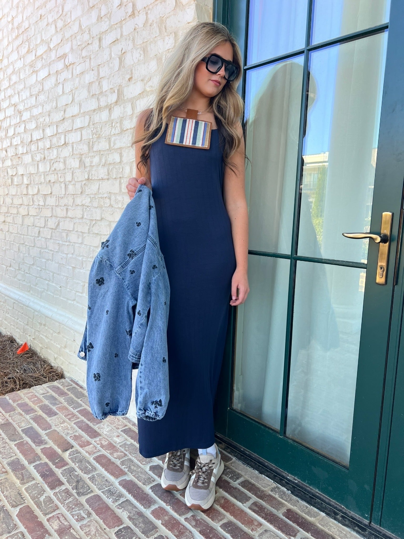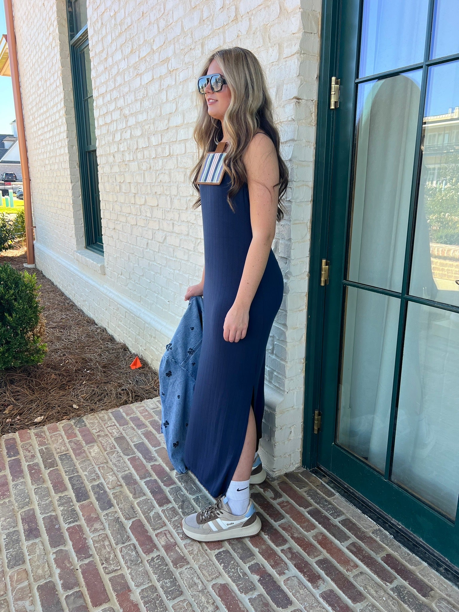 With a built-in shelf bra and flattering scoop neckline, this ribbed midi dress was made for chill days. The side slit adds just the right touch of movement and ease.