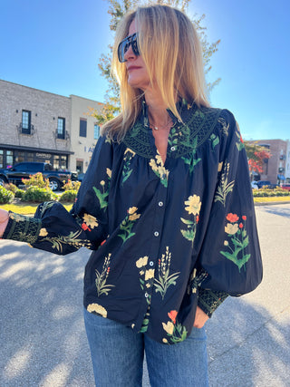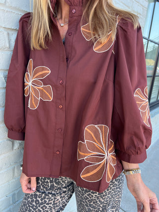 Entro | Halyn Floral Ruffle Blouse Burgundy