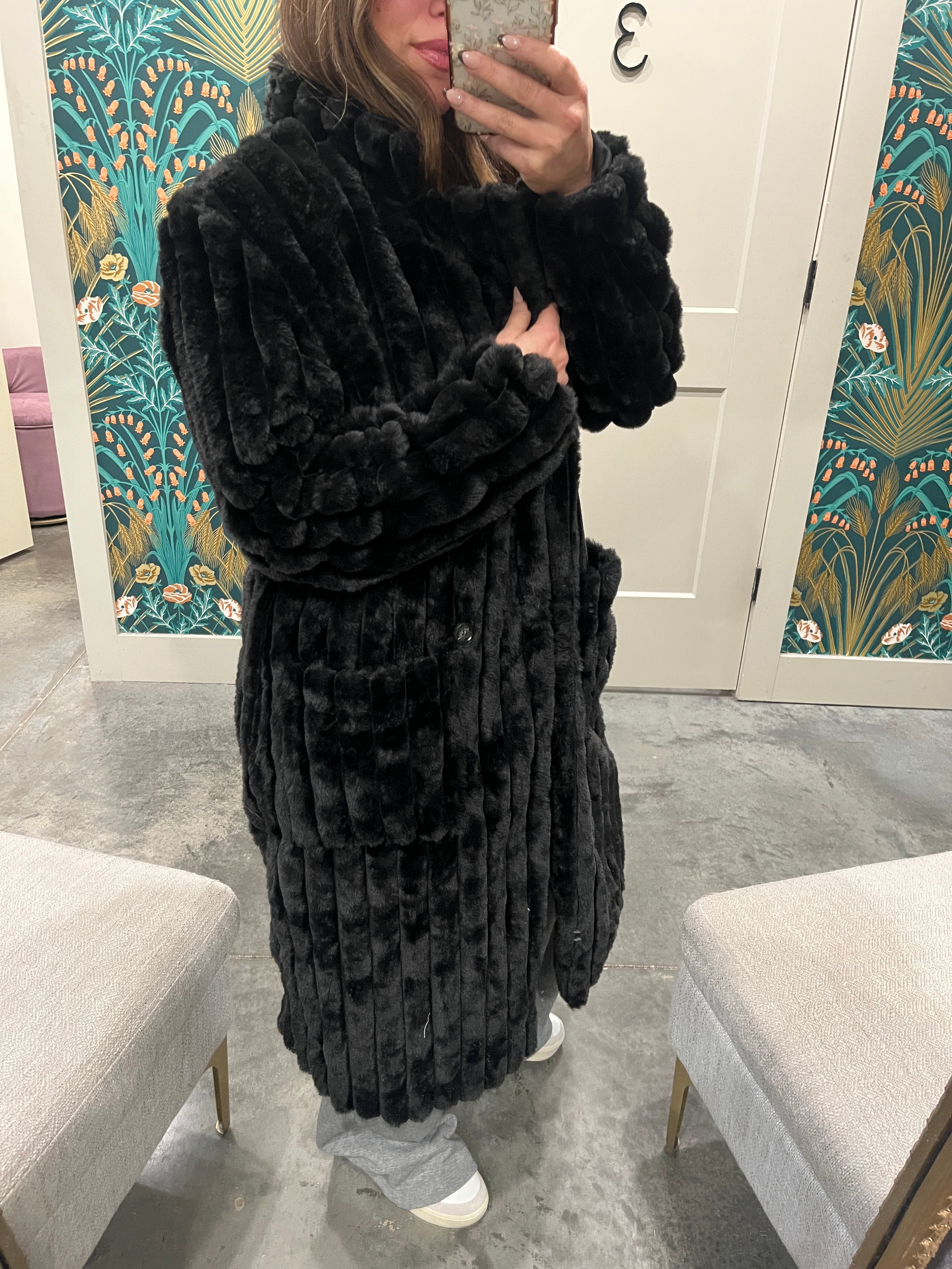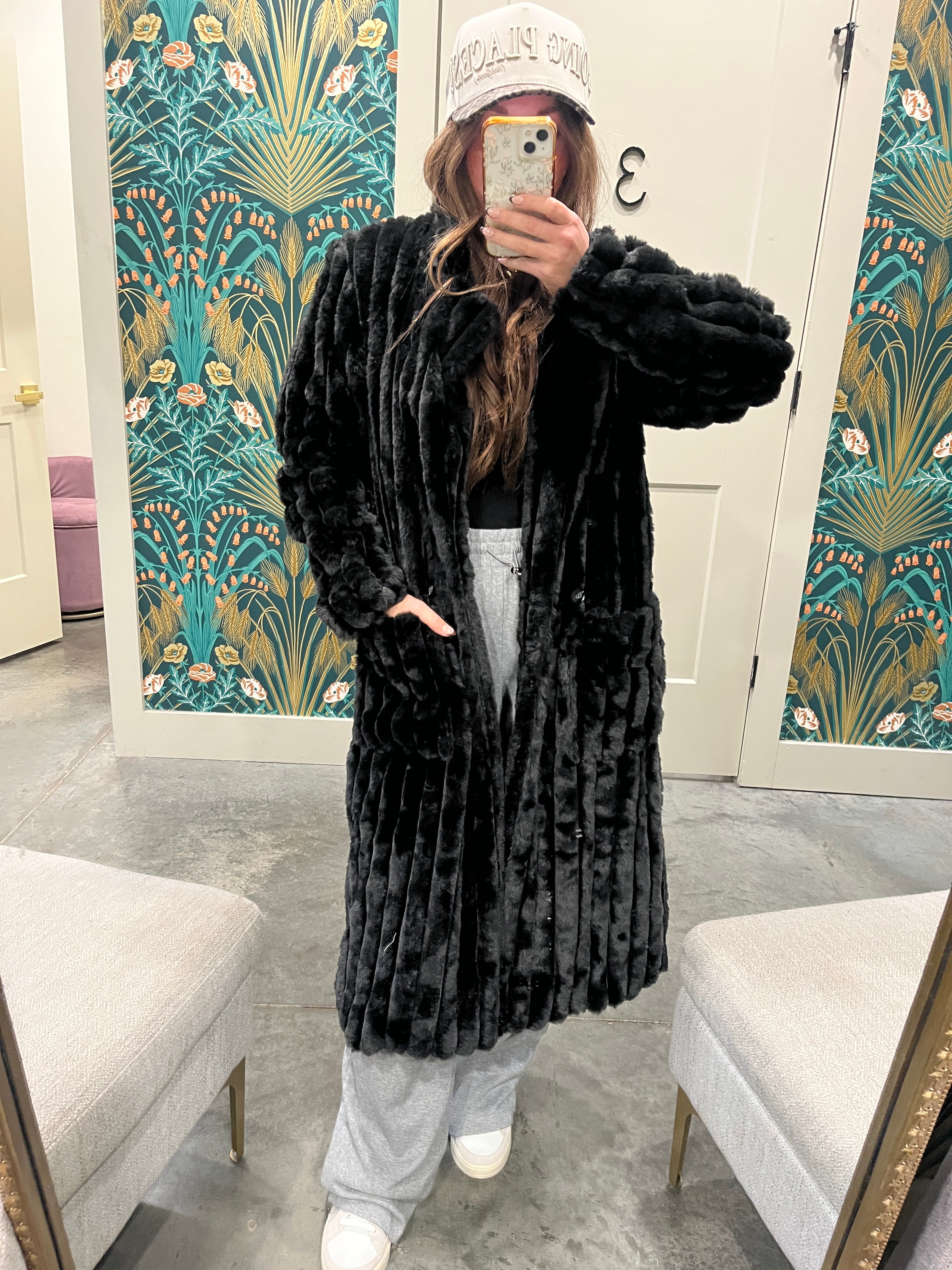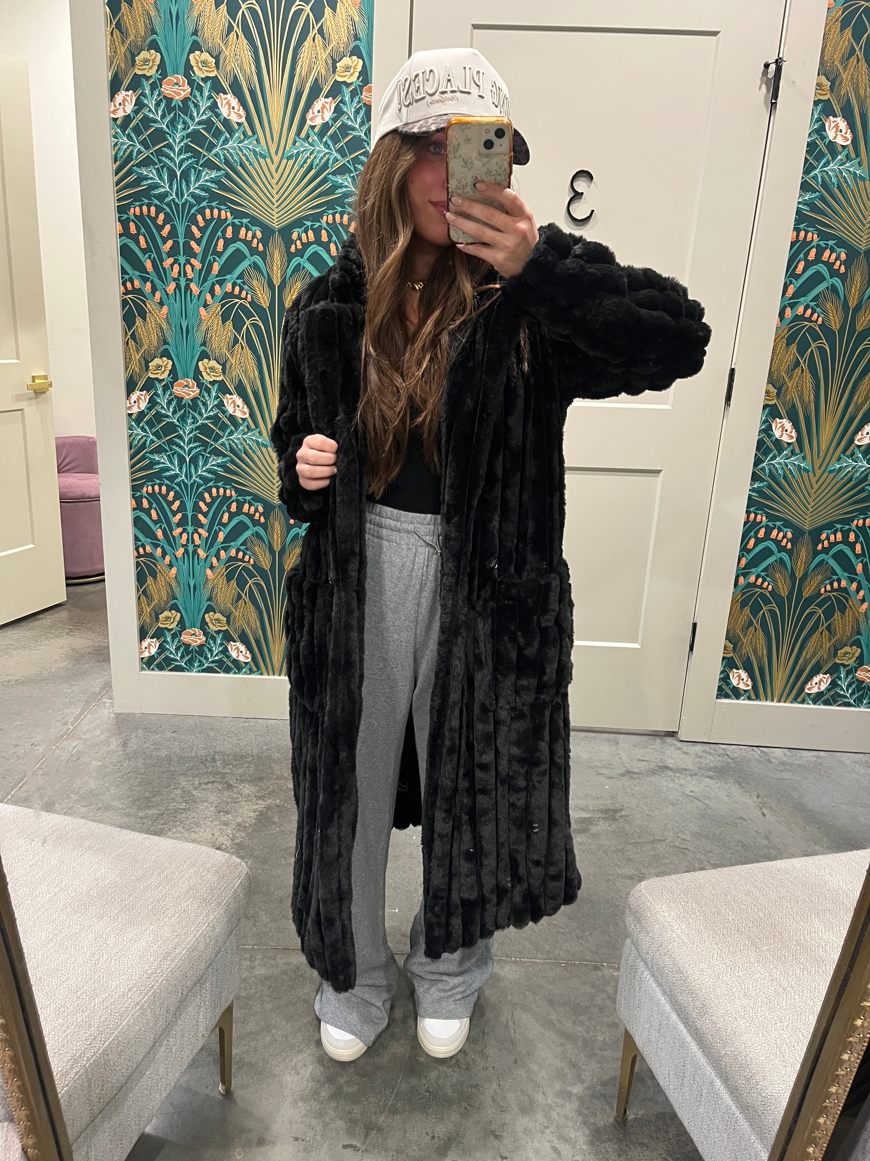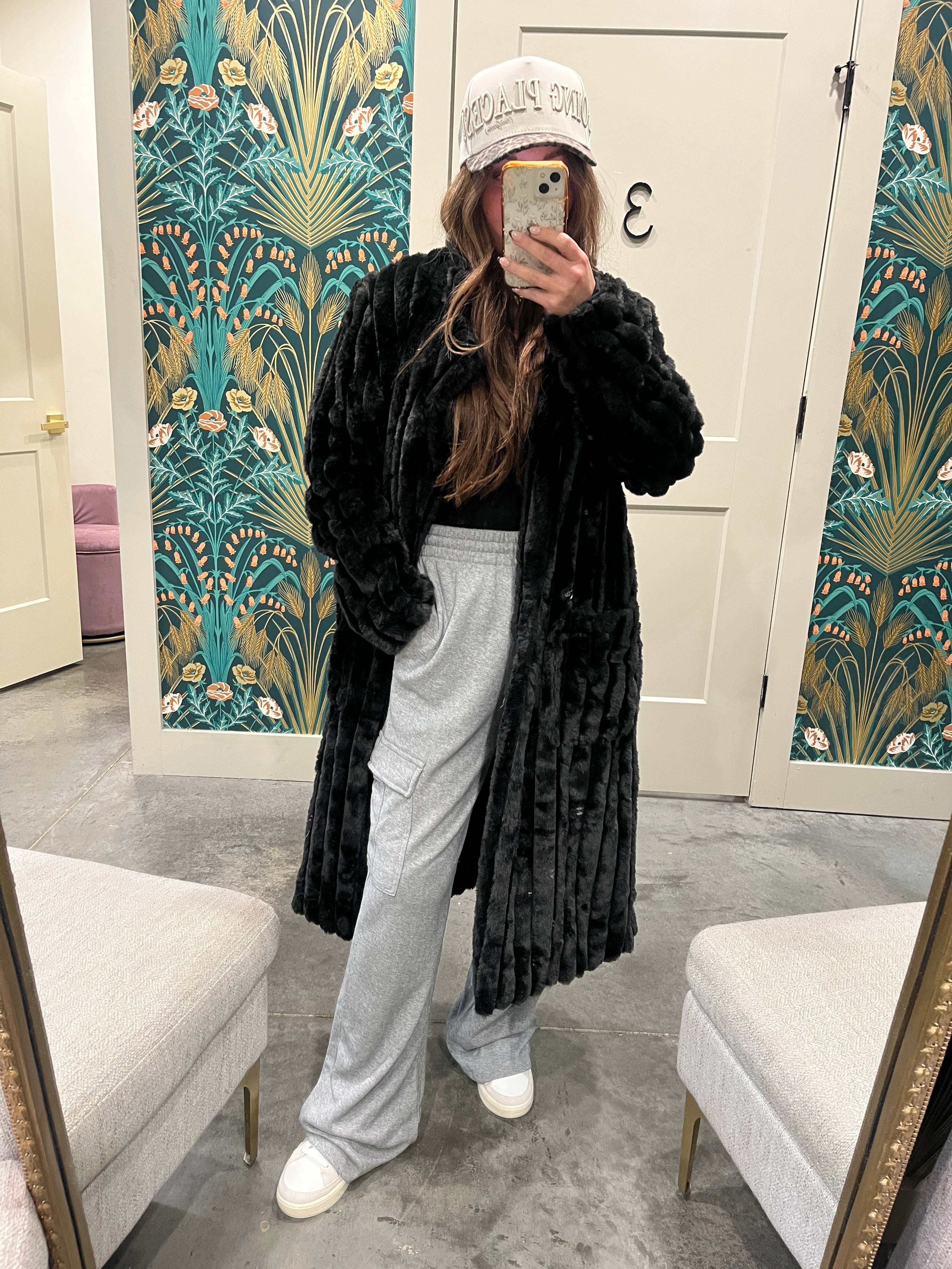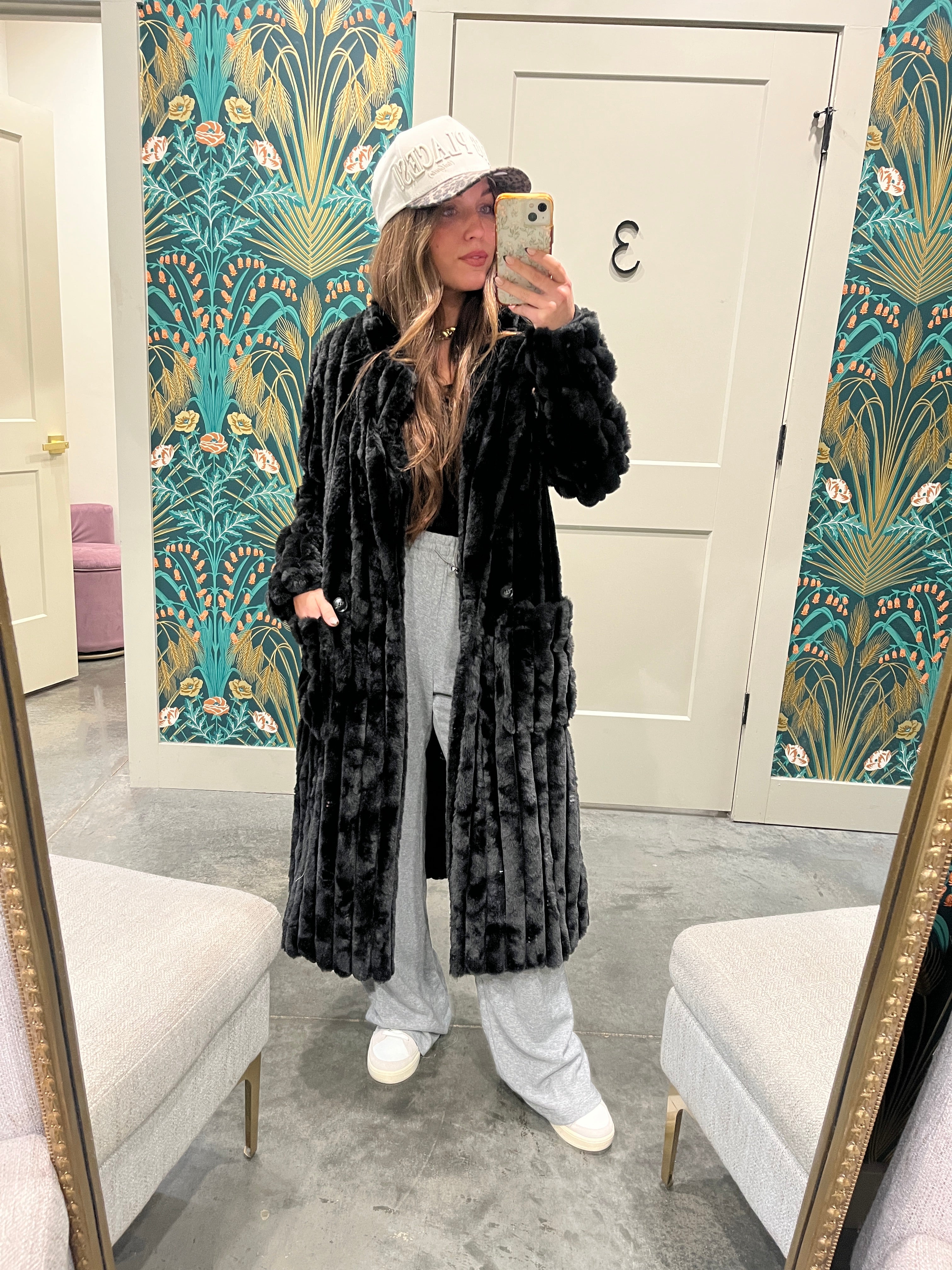 Timeless, chic, and impossibly soft 🖤 The Plush Luxe Faux Fur Coat in black is the definition of classic glamour. With its longline fit, silky texture, and effortless drape, it’s the perfect statement layer for elevating any look while keeping cozy all season long.